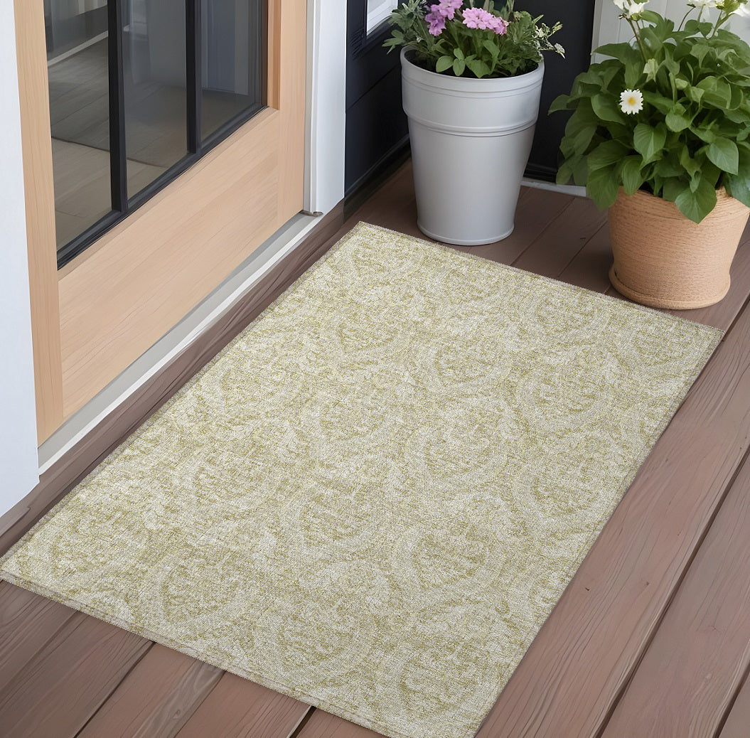 2' X 3' Light Green Damask Washable Non Skid Indoor Outdoor Area Rug
