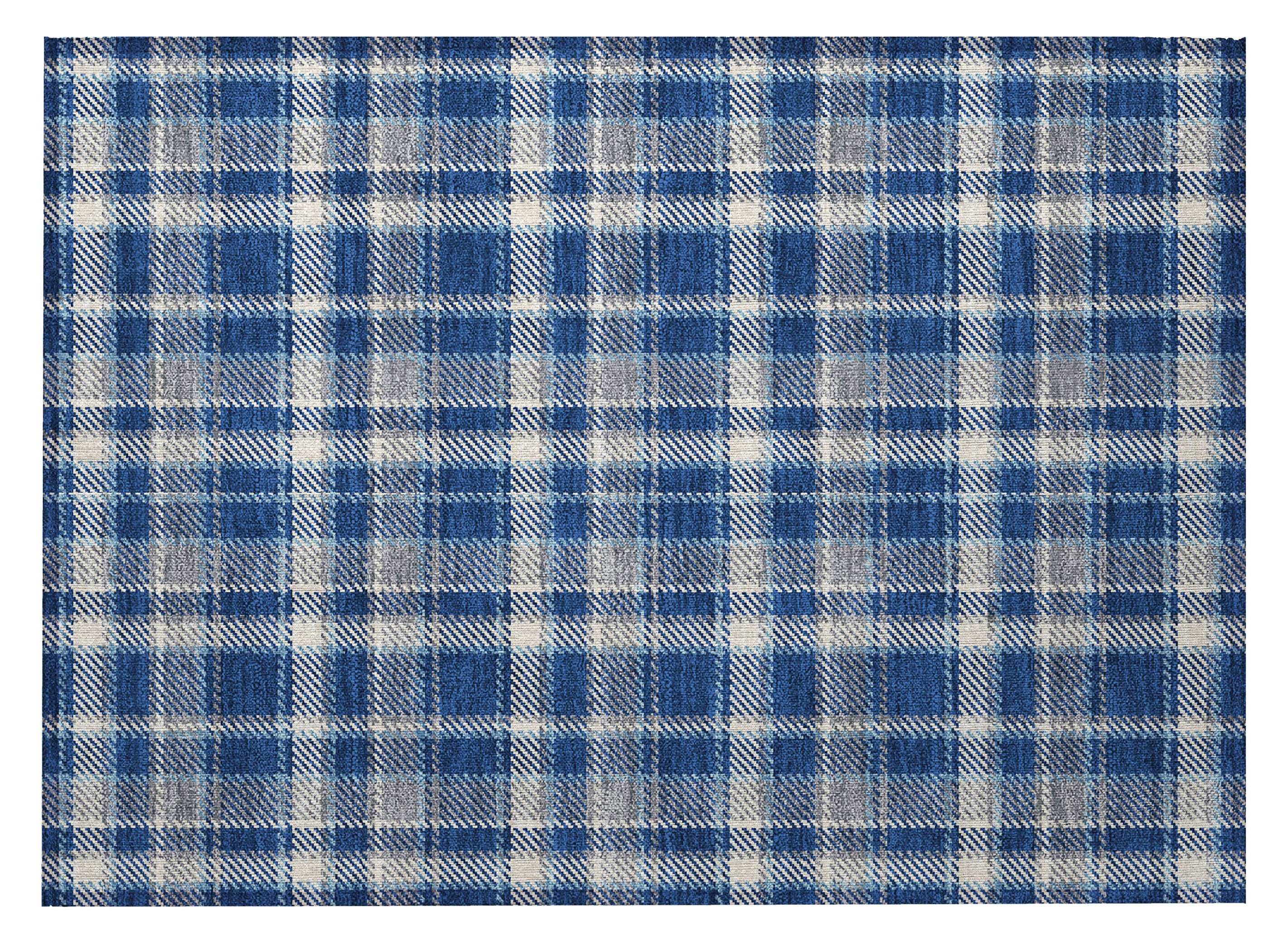 2' X 3' Navy and Ivory Plaid Washable Non Skid Indoor Outdoor Area Rug