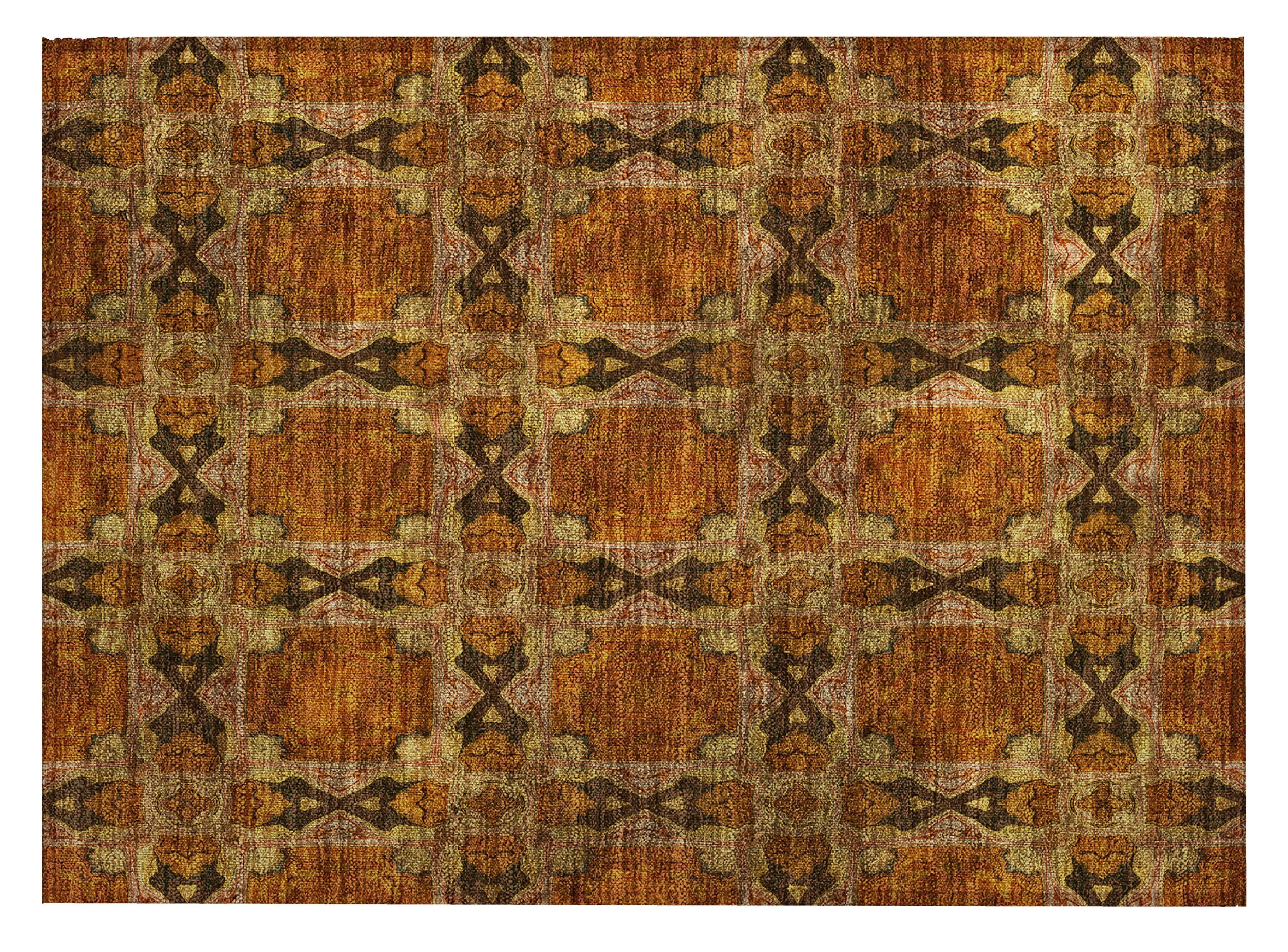 2' X 3' Orange and Rust Floral Medallion Washable Non Skid Indoor Outdoor Area Rug