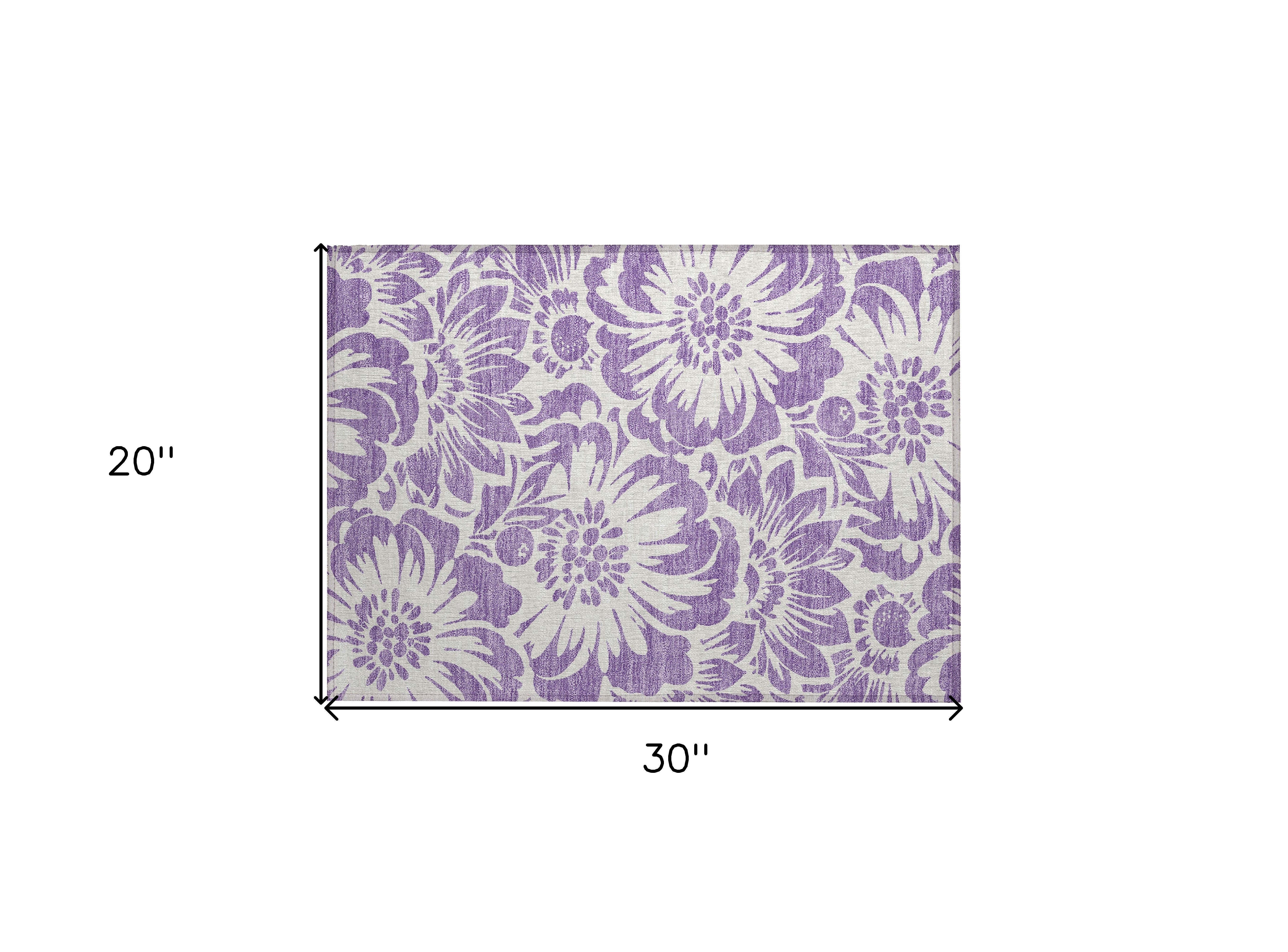 2' X 3' Purple and Ivory Floral Washable Non Skid Indoor Outdoor Area Rug