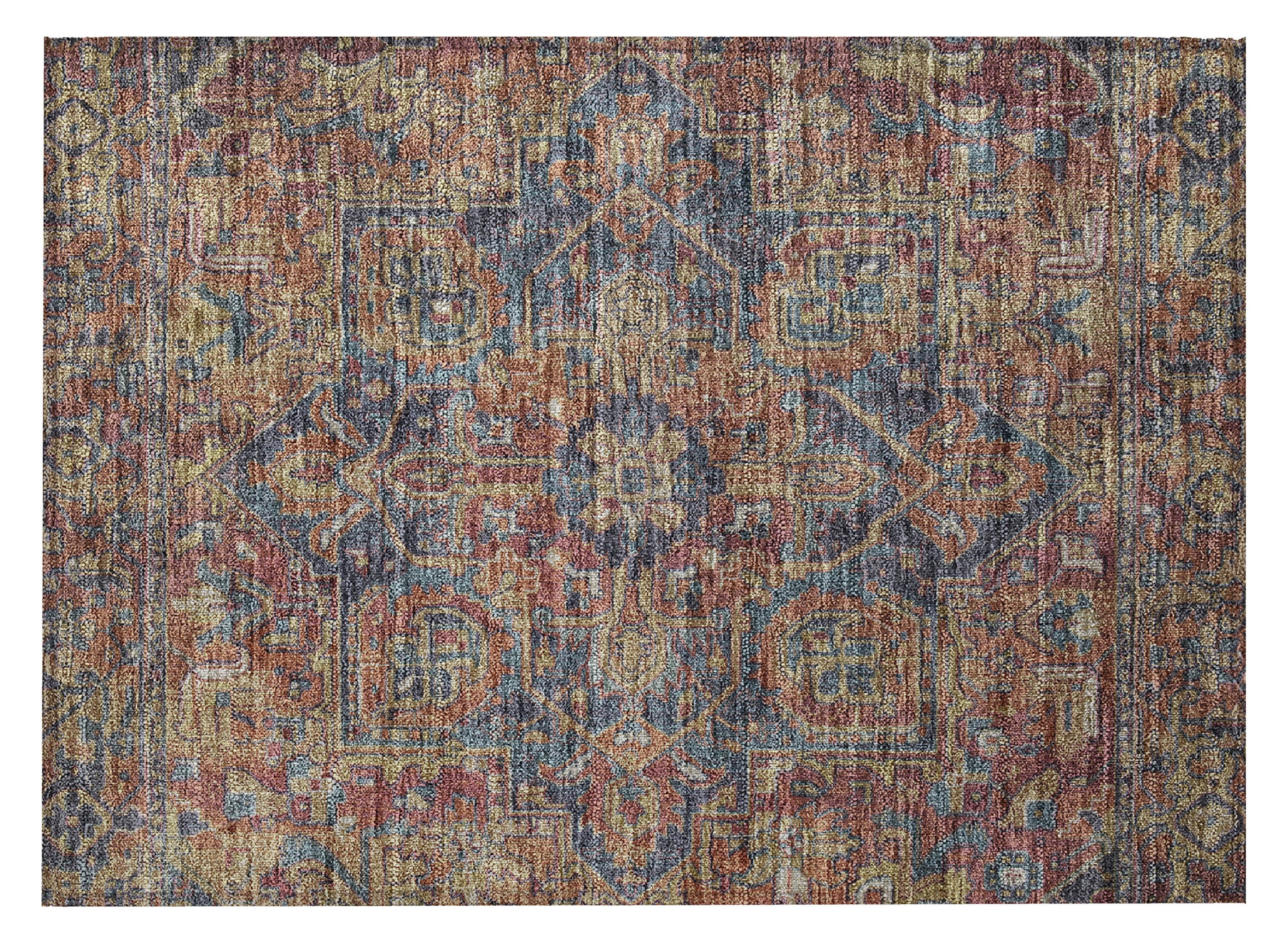 Add some artistry to your room with this 2-foot x 3-foot red orange and blue oriental washable...