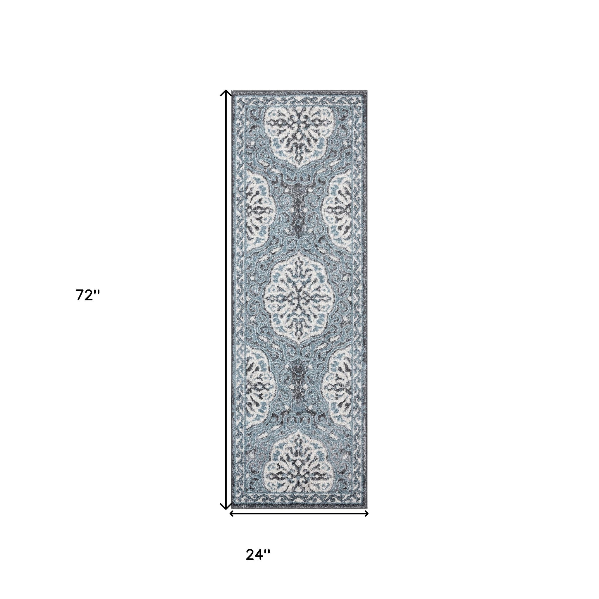 2' X 6' Gray and Blue Medallion Power Loom Runner Rug