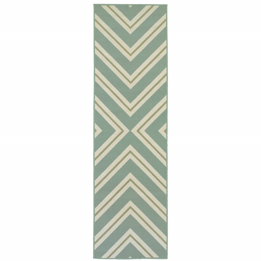 2' X 8' Blue Geometric Stain Resistant Indoor Outdoor Area Rug