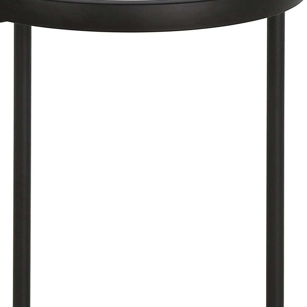 20" Black And Clear Glass And Steel Round End Table