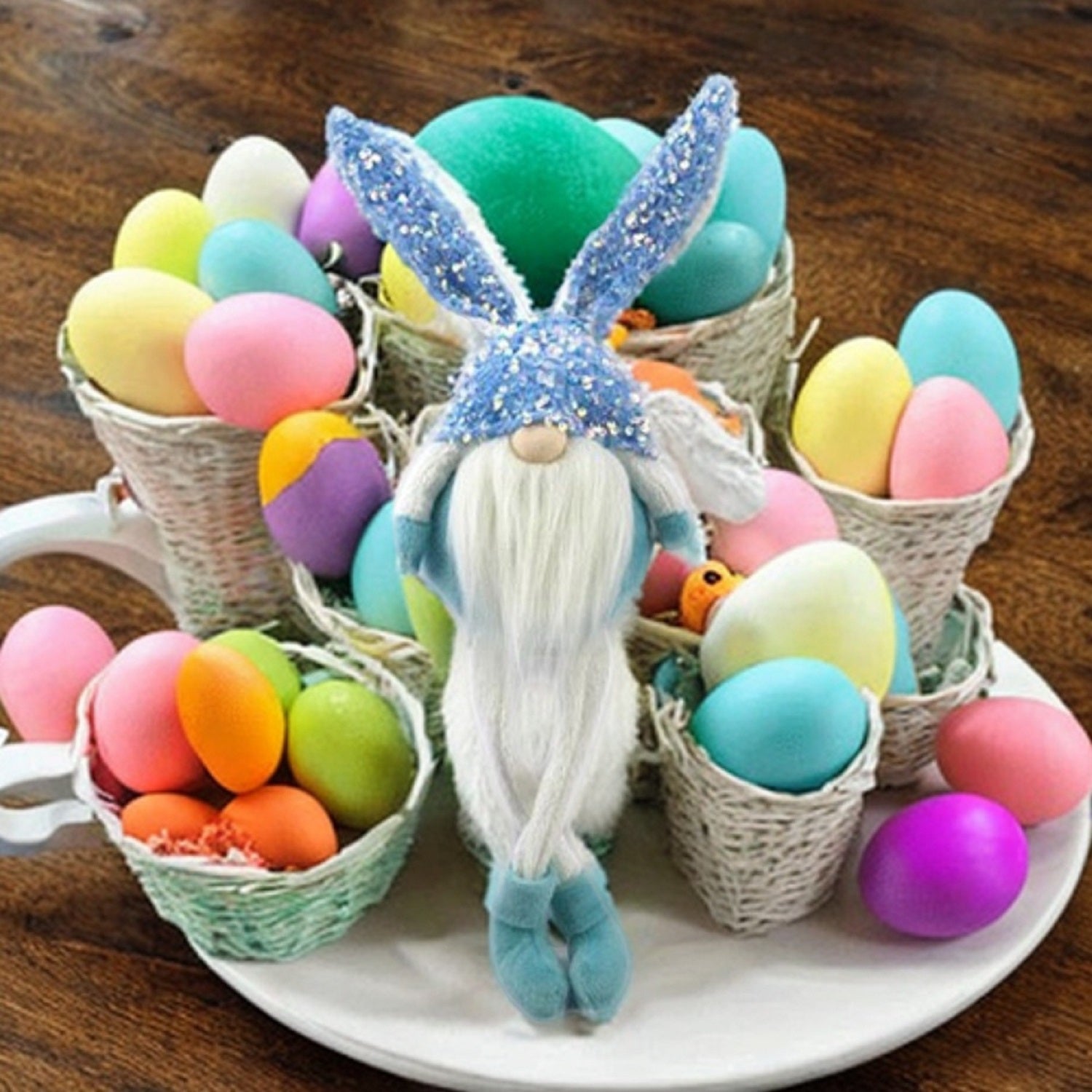 20" Blue and White Fabric Bunny Rabbit Sitting Gnome
