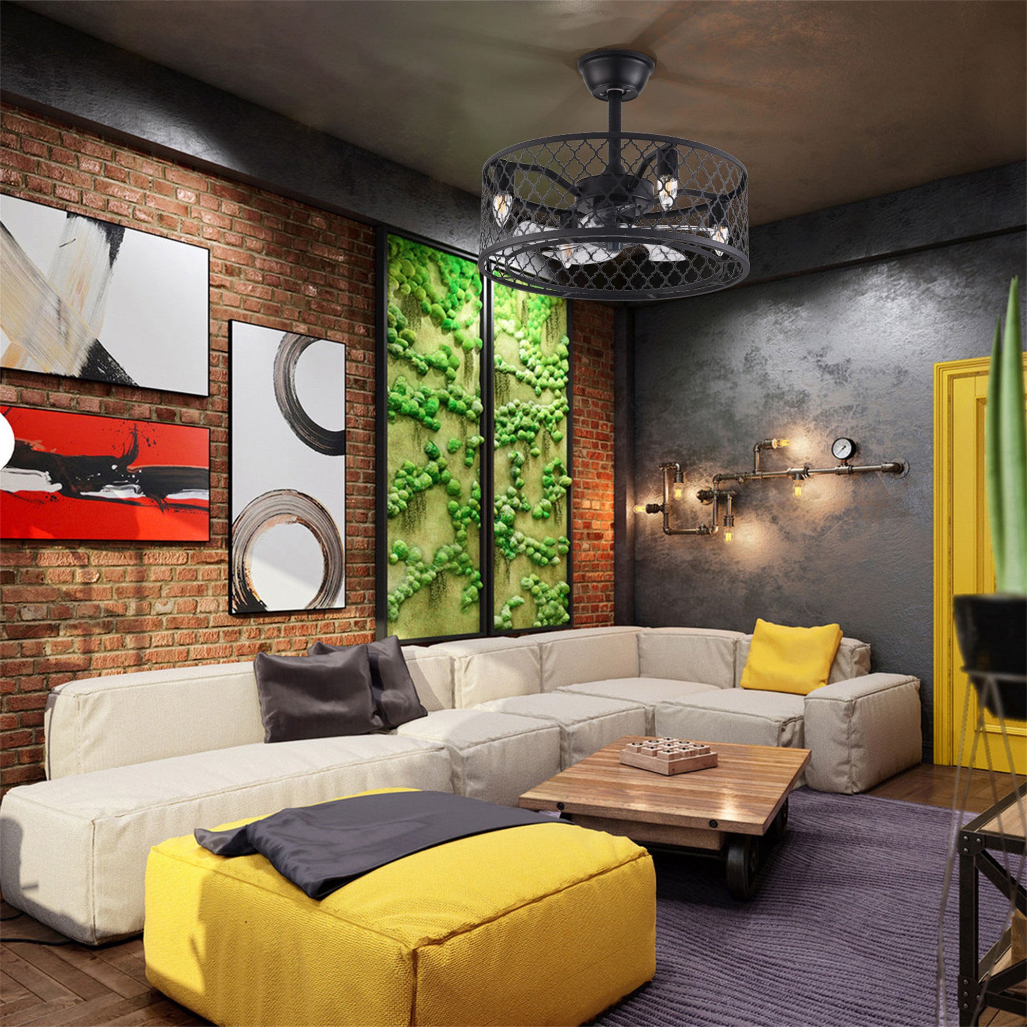 The 20-inch clear caged five blade remote control schoolhouse light ceiling fan is a stunning addition to...