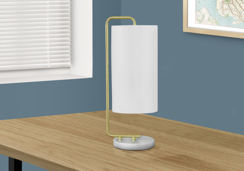 20" Gold and White Marble Round Arched Table Lamp With Ivory Drum Shade