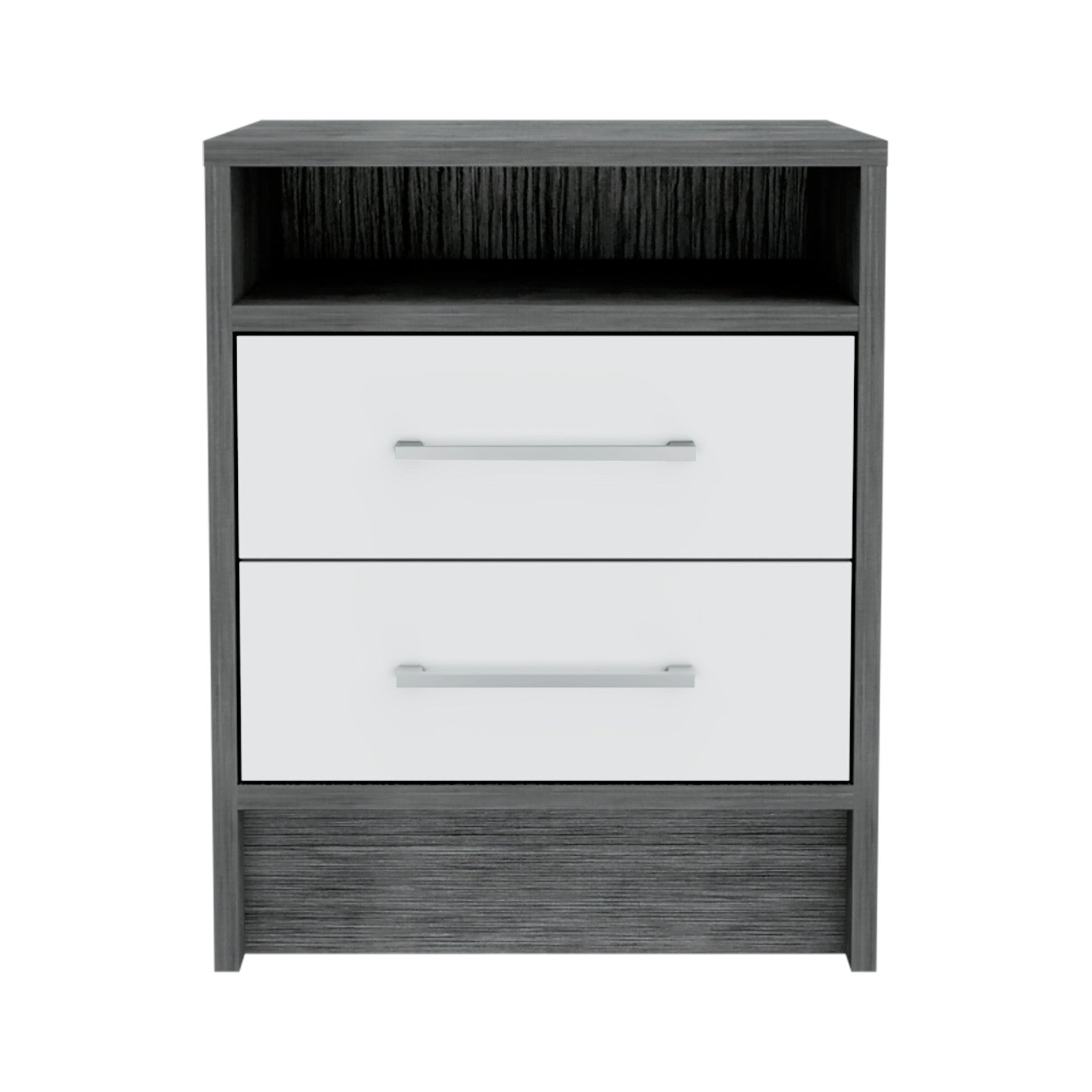 Good looking design and practical styling meet to form this 20-inch gray two drawer faux wood nightstand....