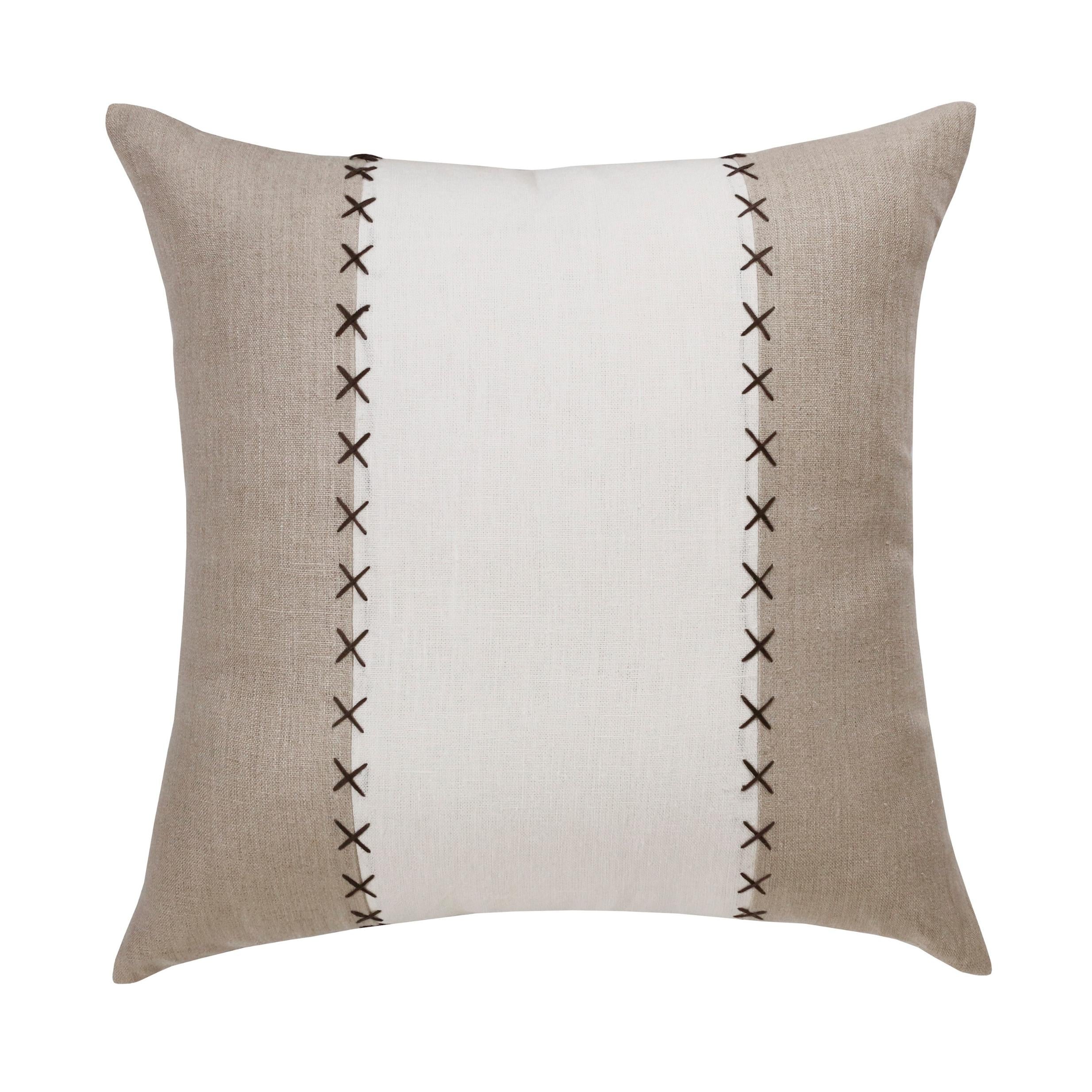 Unique and decorative, this comfortable 20" x 20" gray and tan linen patchwork zippered pillow will leave...