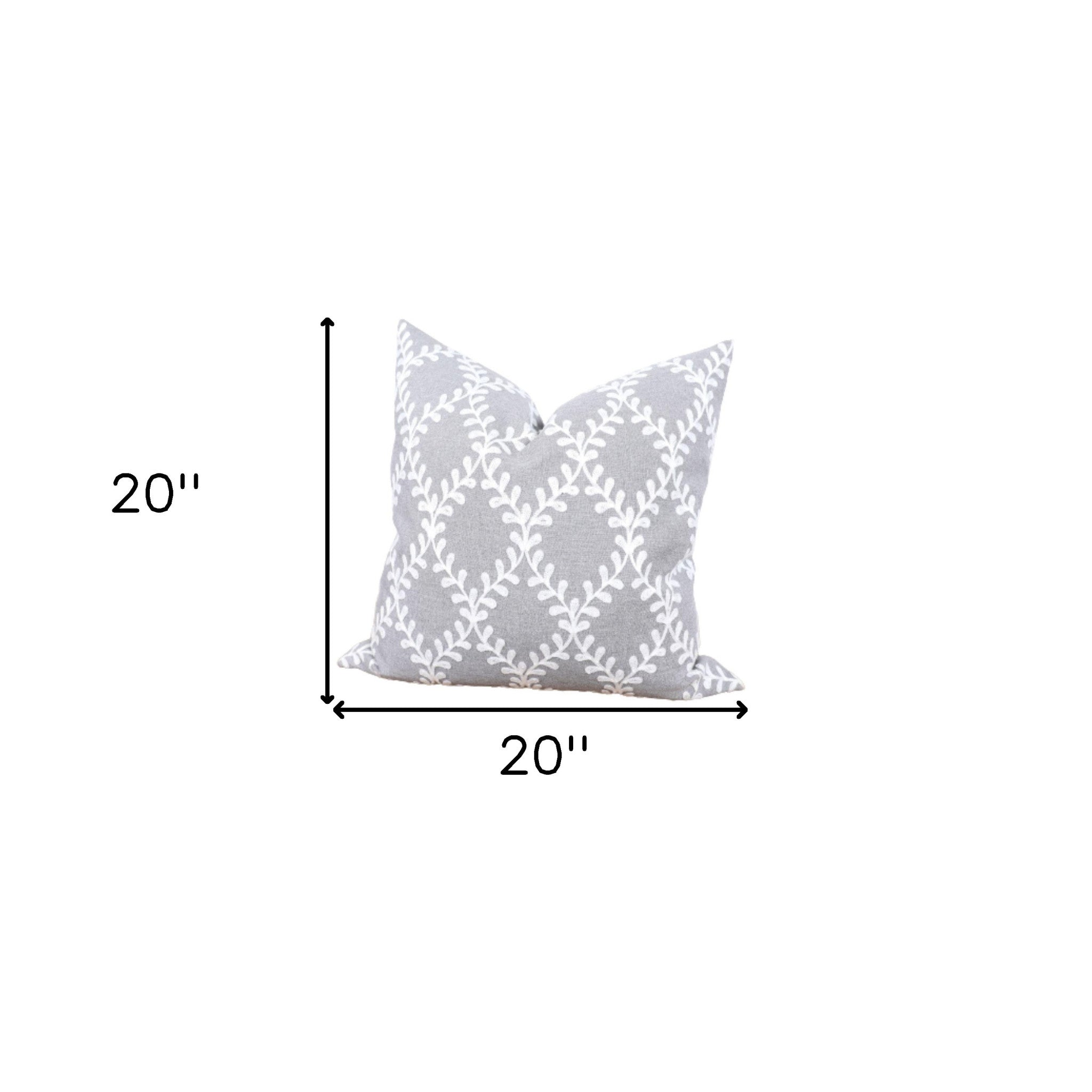 20" X 20" Gray and White Diamond Polyester Zippered Pillow With Embroidery