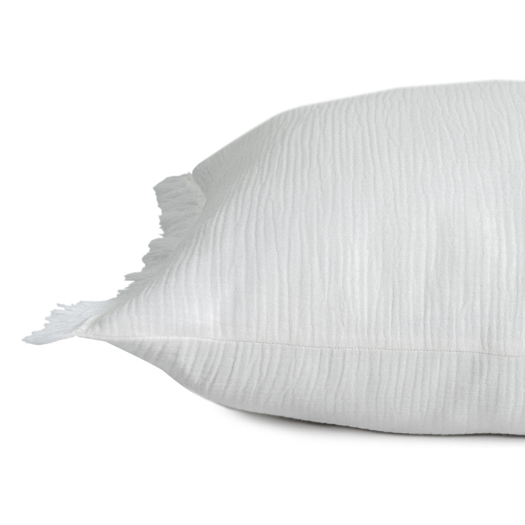 20" X 20" White Cotton Zippered Down Pillow With Fringe