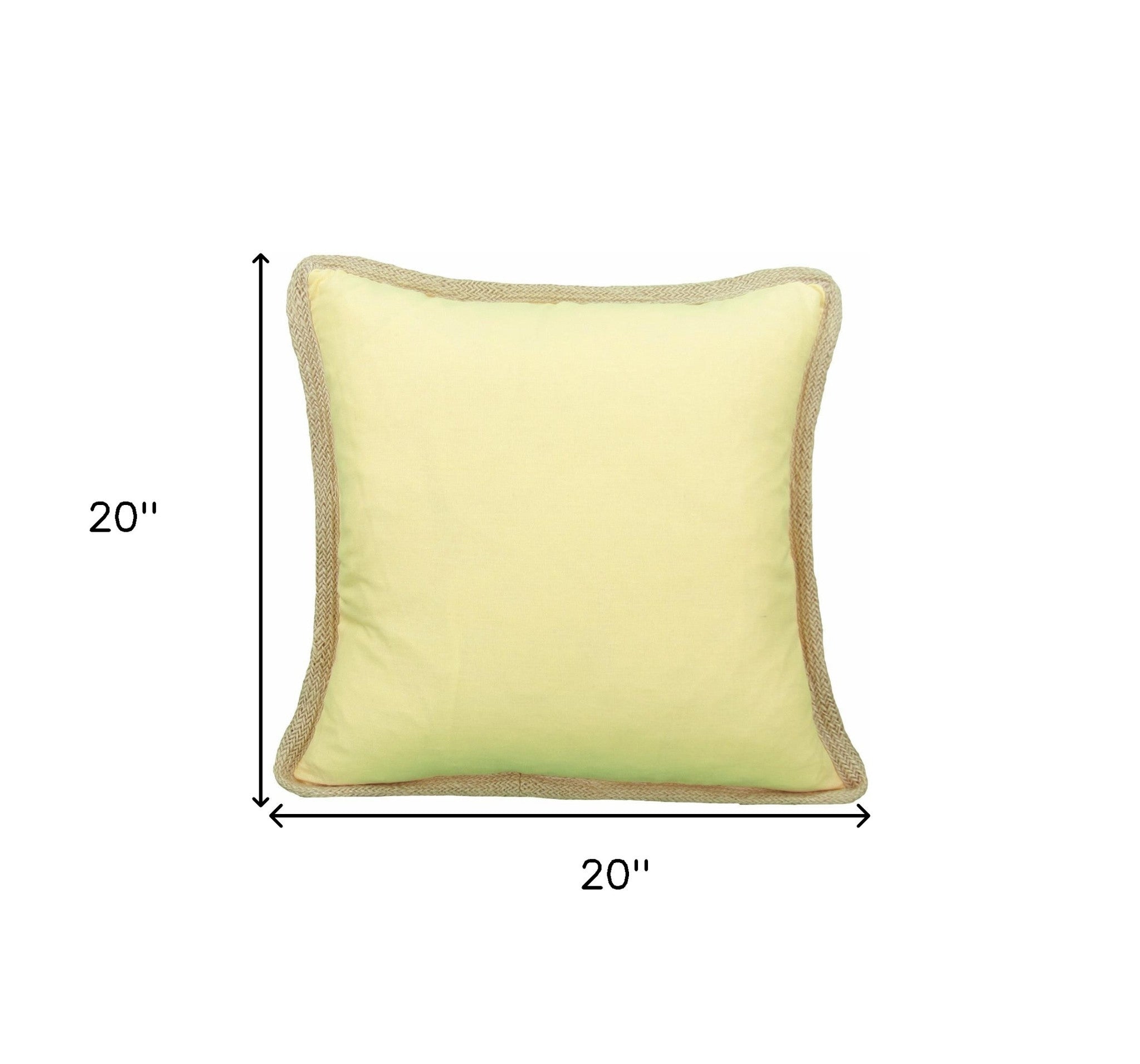 20"x20" Yellow and Beige Linen Blend Zippered Pillow