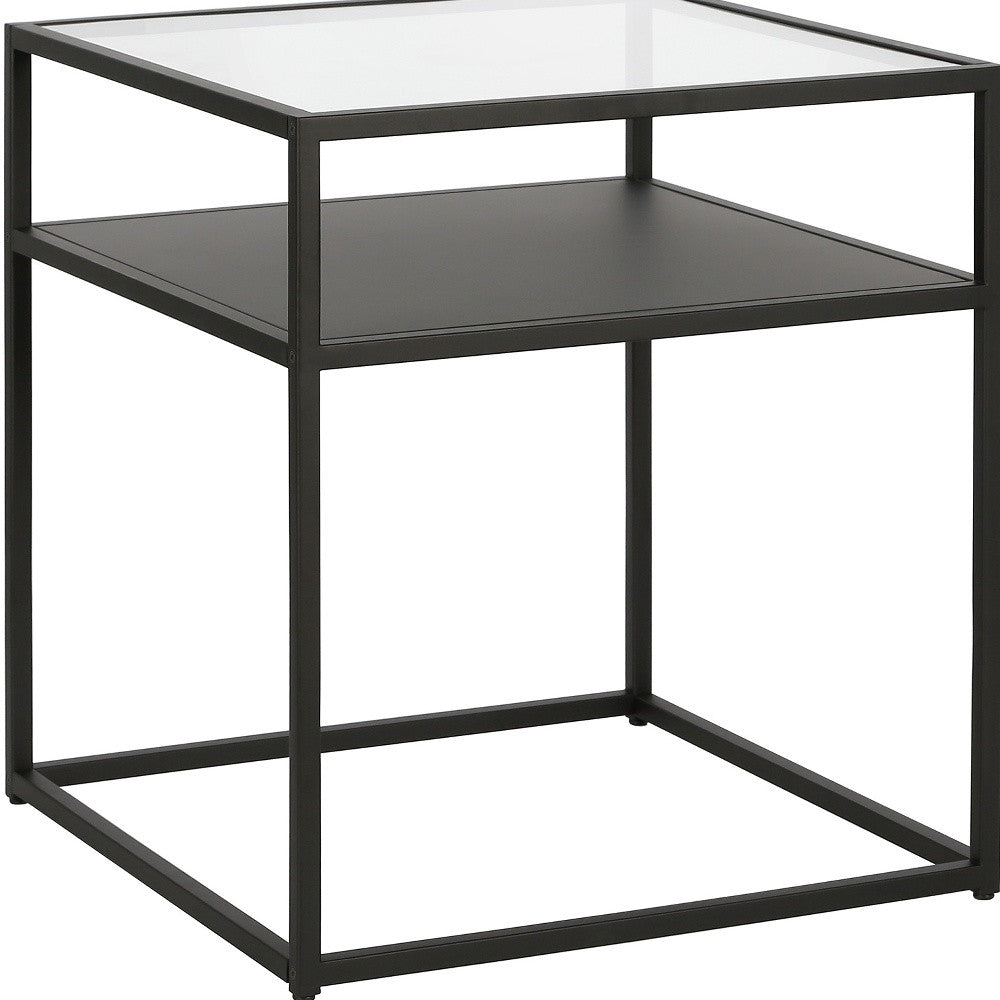 22" Black And Clear Glass And Steel Square End Table With Shelf