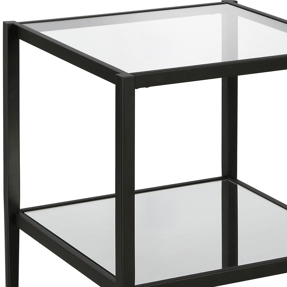 22" Black And Clear Glass And Steel Square Mirrored End Table With Shelf