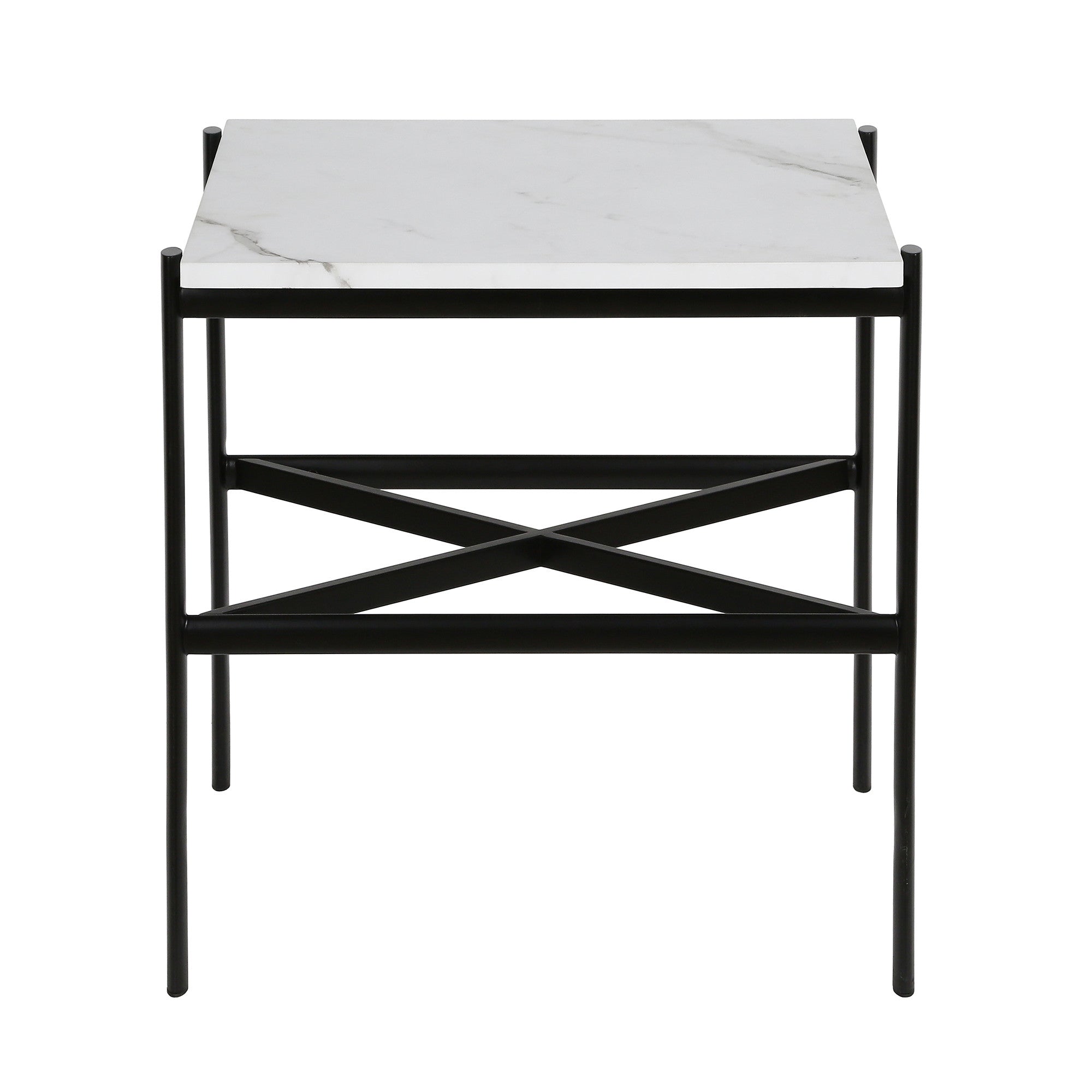 Show off your exquisite taste with this 22-inch black and white faux marble and steel end table....