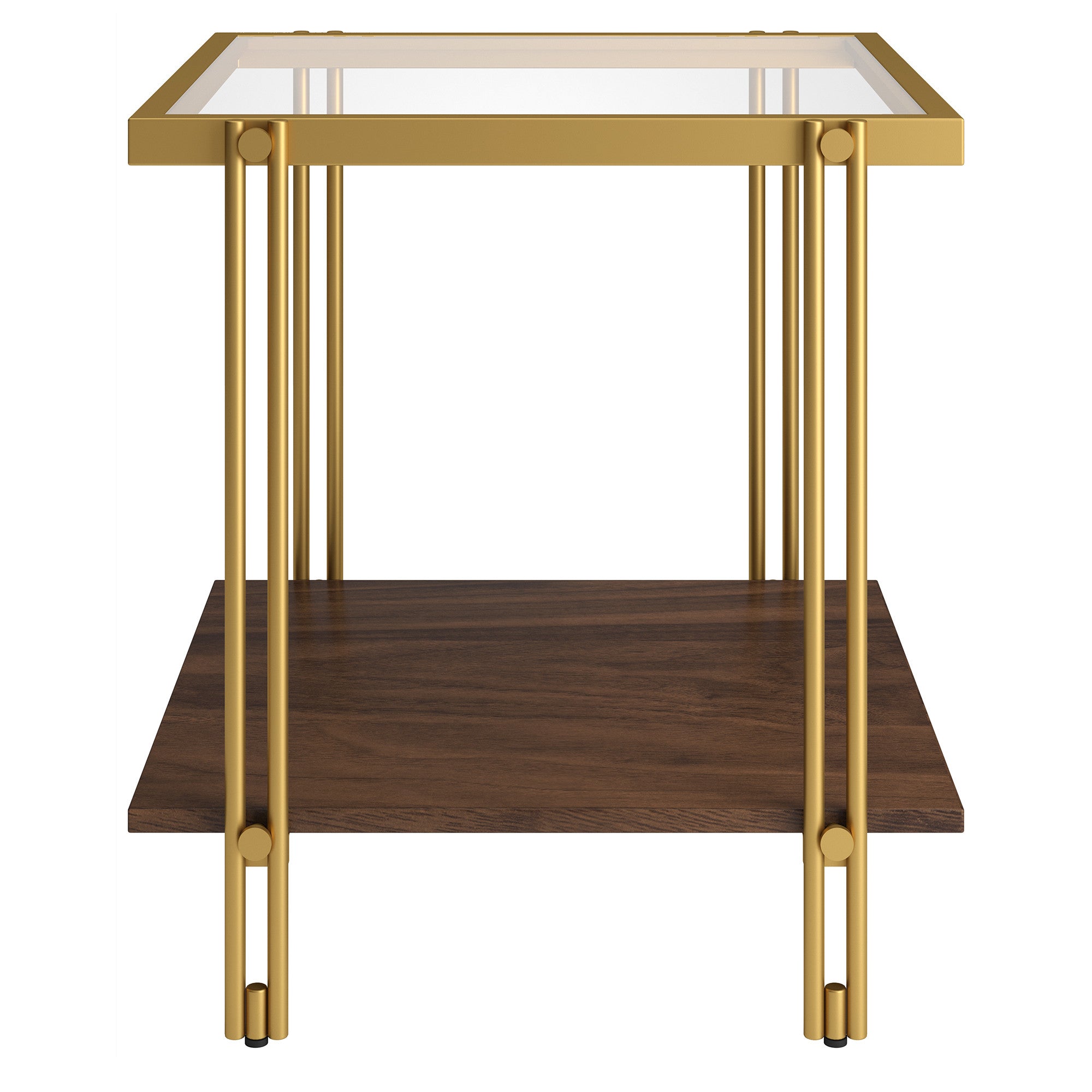 22" Brass And Clear Glass And Steel Square End Table With Shelf