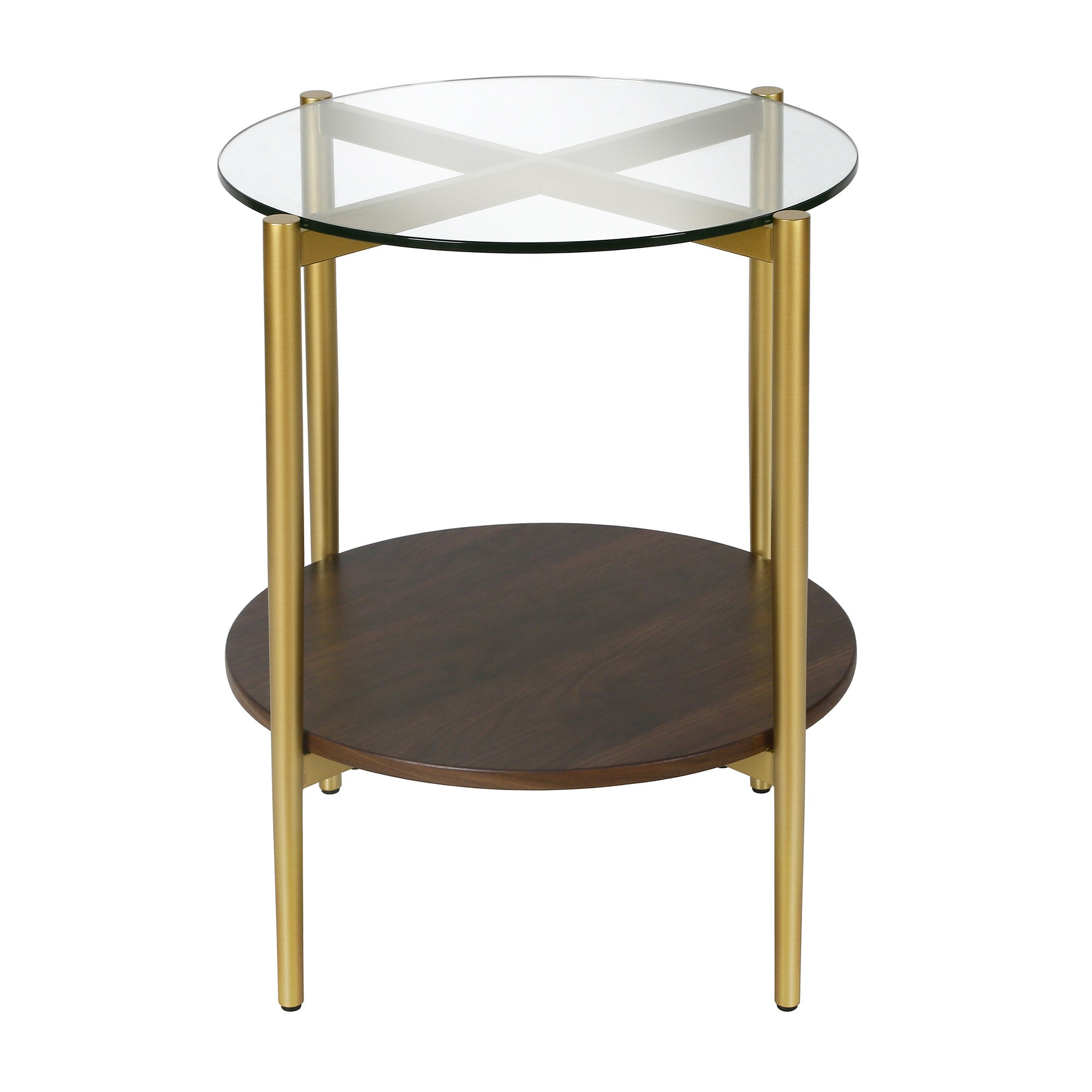 22" Gold And Clear Glass And Steel Round End Table With Shelf
