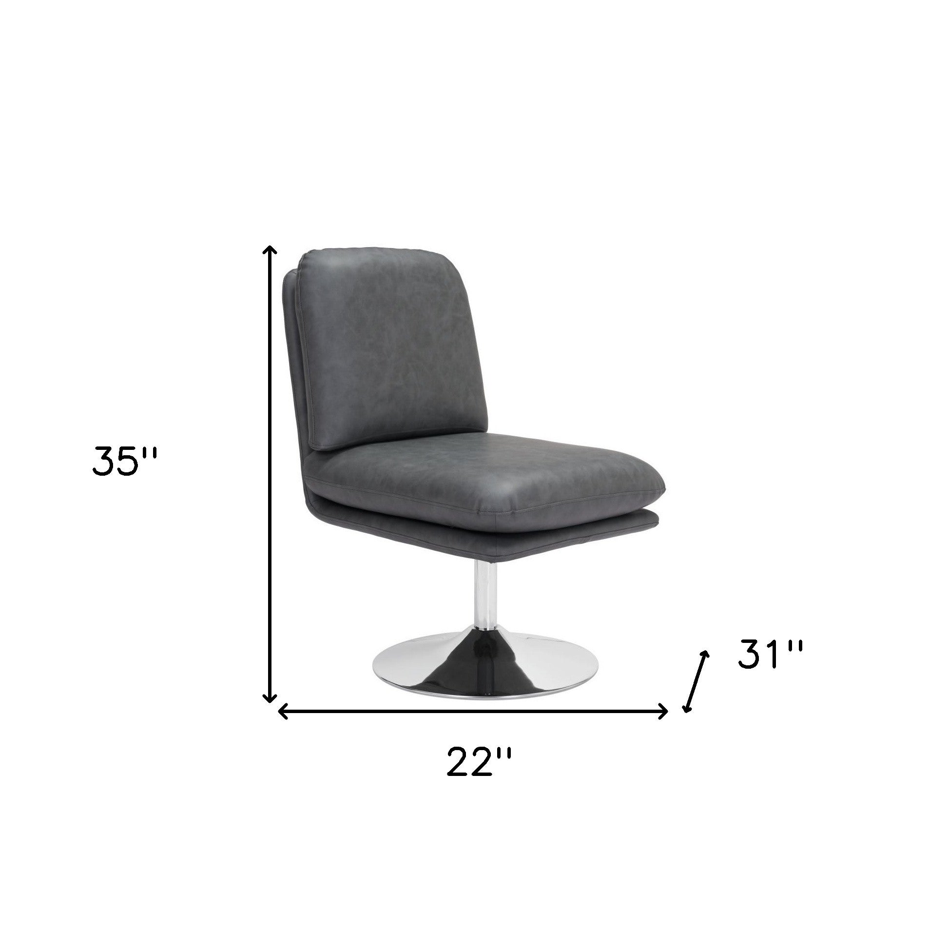 Unique and decorative, this 22-inch gray and silver faux leather side chair will leave a lasting impression....
