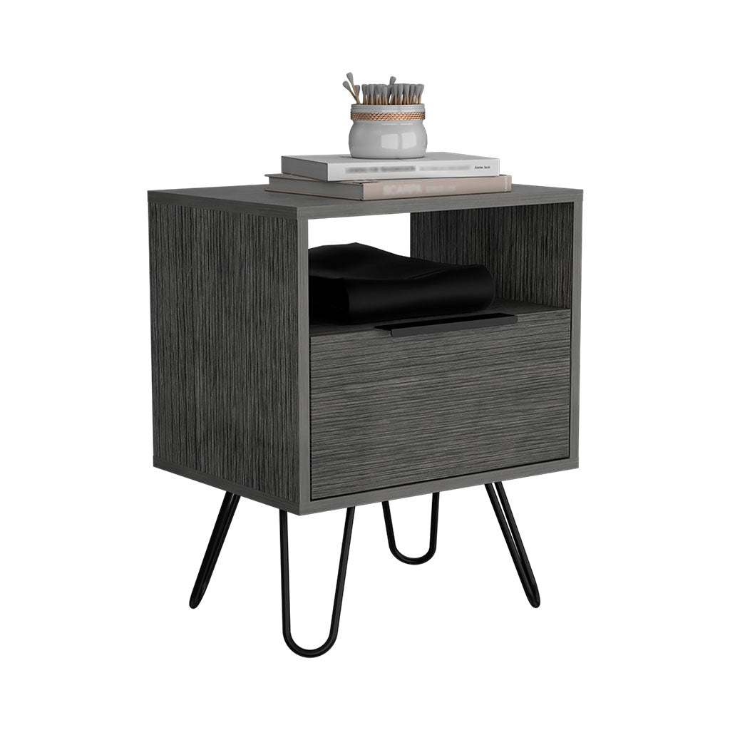 Good looking design and practical styling meet to form this 22-inch gray faux wood nightstand with storage....