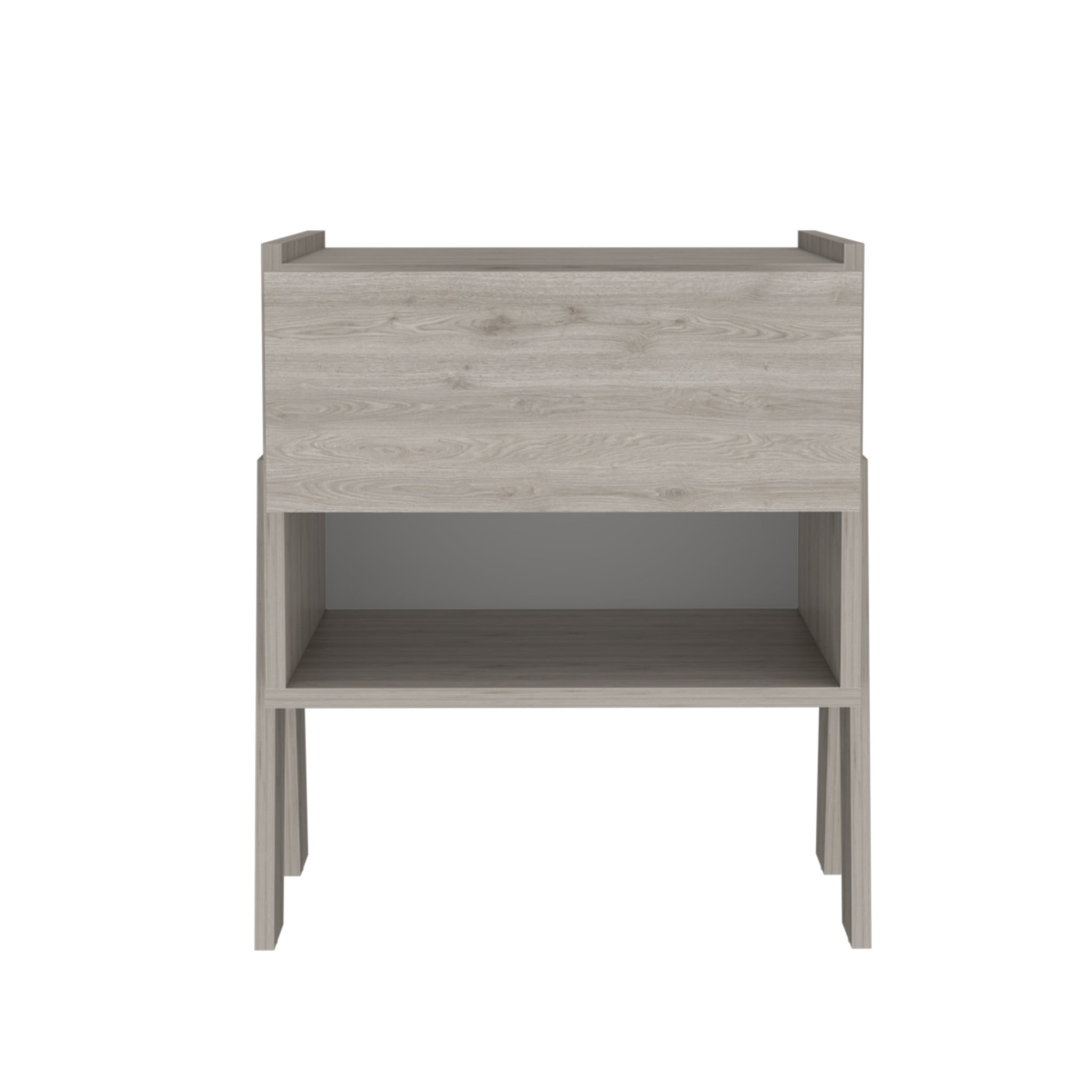Our 22-inch gray one drawer faux wood nightstand will compliment your bed beautifully. Robust in design, the...