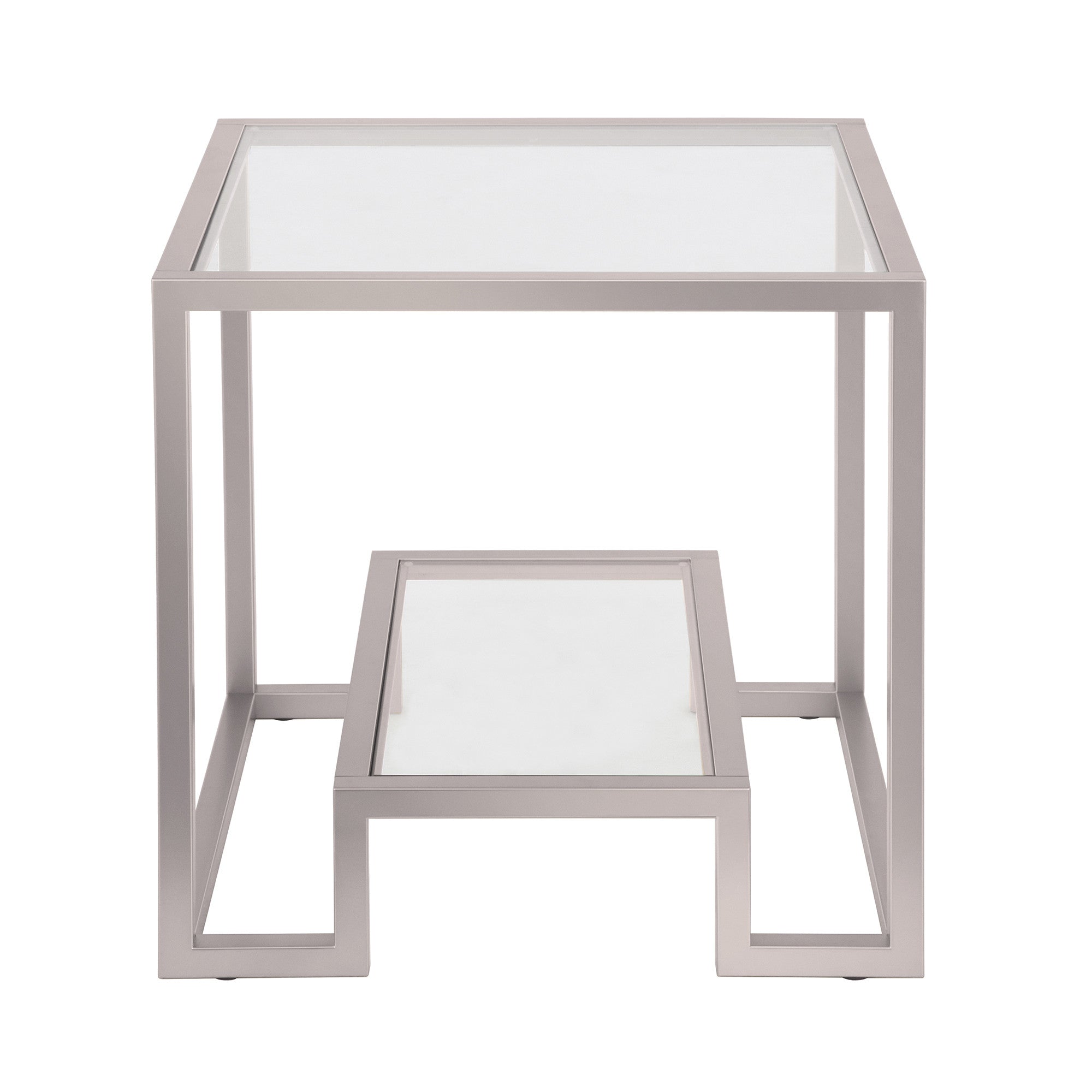 22" Nickel And Clear Glass And Steel Square End Table With Shelf