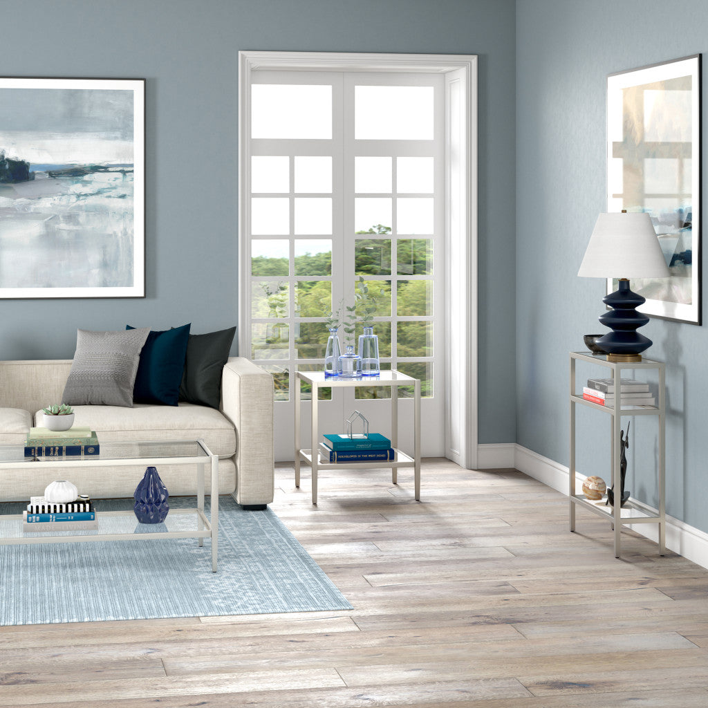 22" Nickel And Clear Glass And Steel Square End Table With Shelf