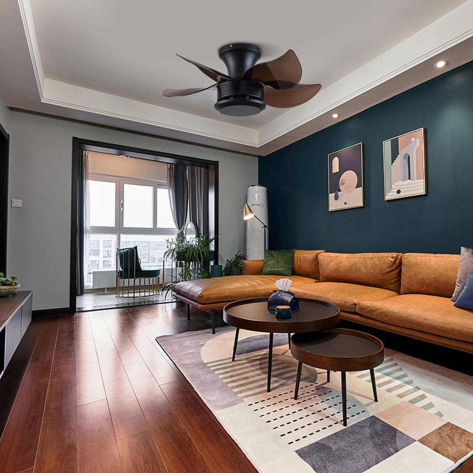Upgrade your home with the 23-inch brown flush mount five blade ceiling fan. This stylish fan boasts...