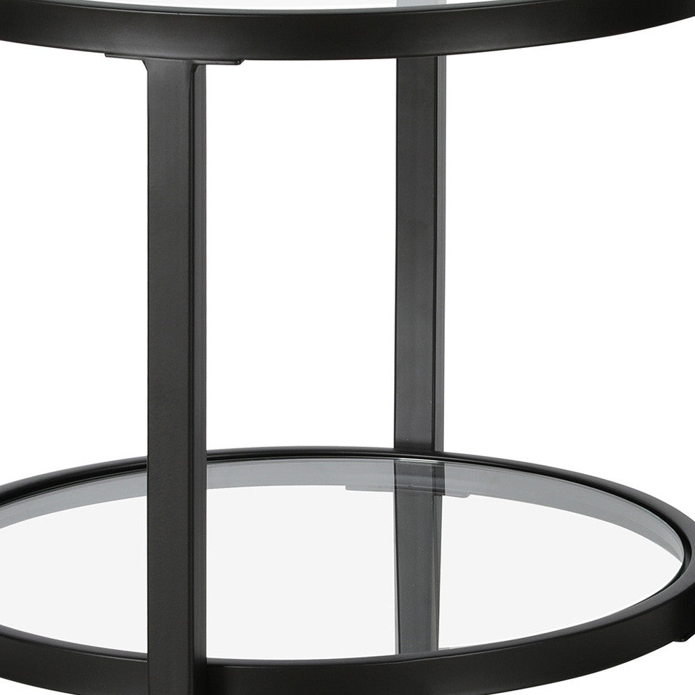 24" Black And Clear Glass And Steel Round End Table With Shelf