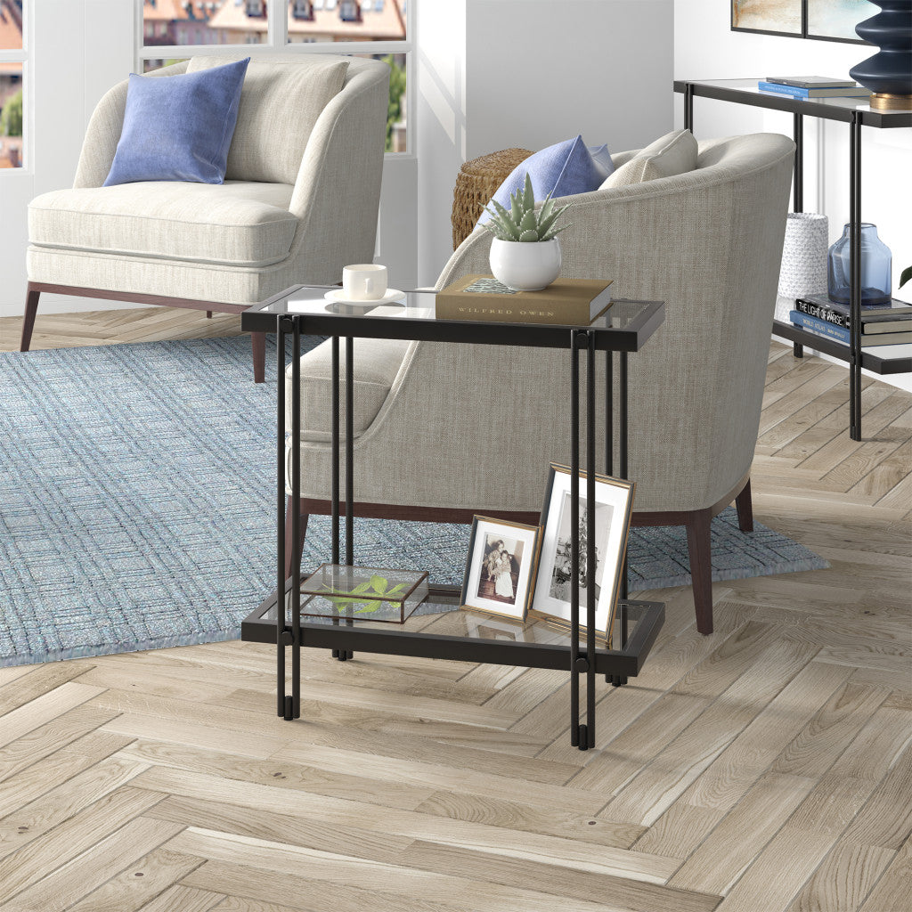 24" Black And Clear Glass End Table With Shelf