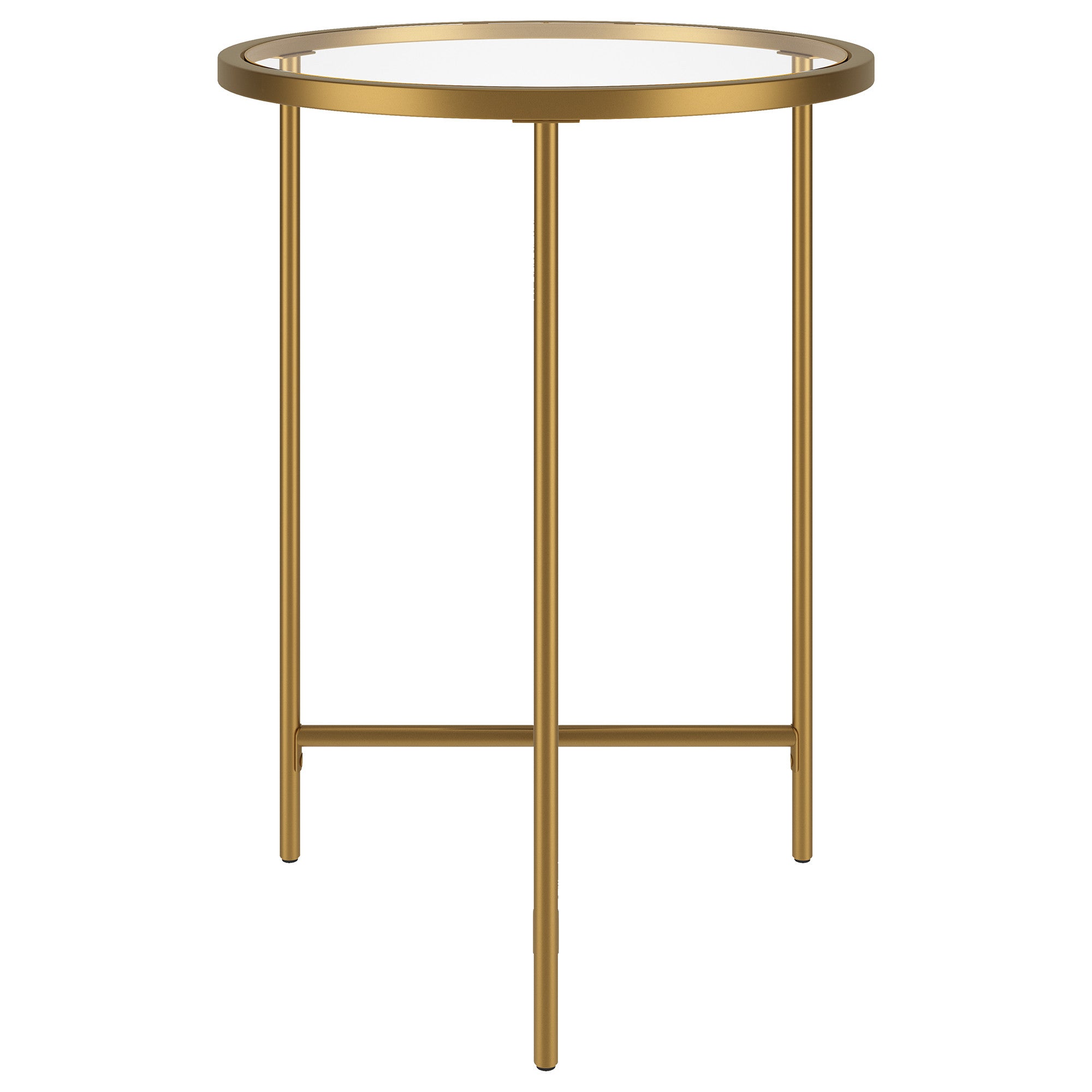 Show off your exquisite taste with this 24-inch gold and clear glass and steel round end table....