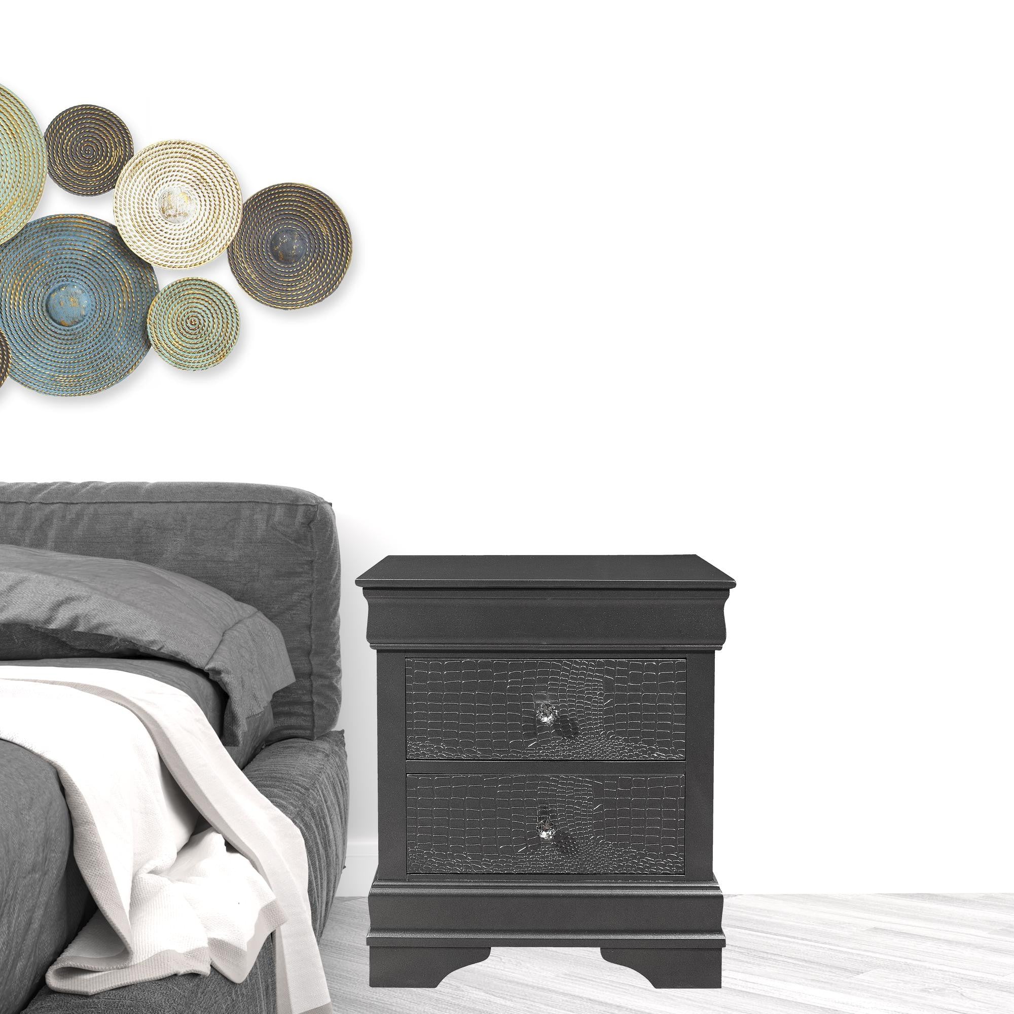 Our 24" gray two drawer nightstand will compliment your bed beautifully. The piece has 2 drawers to...