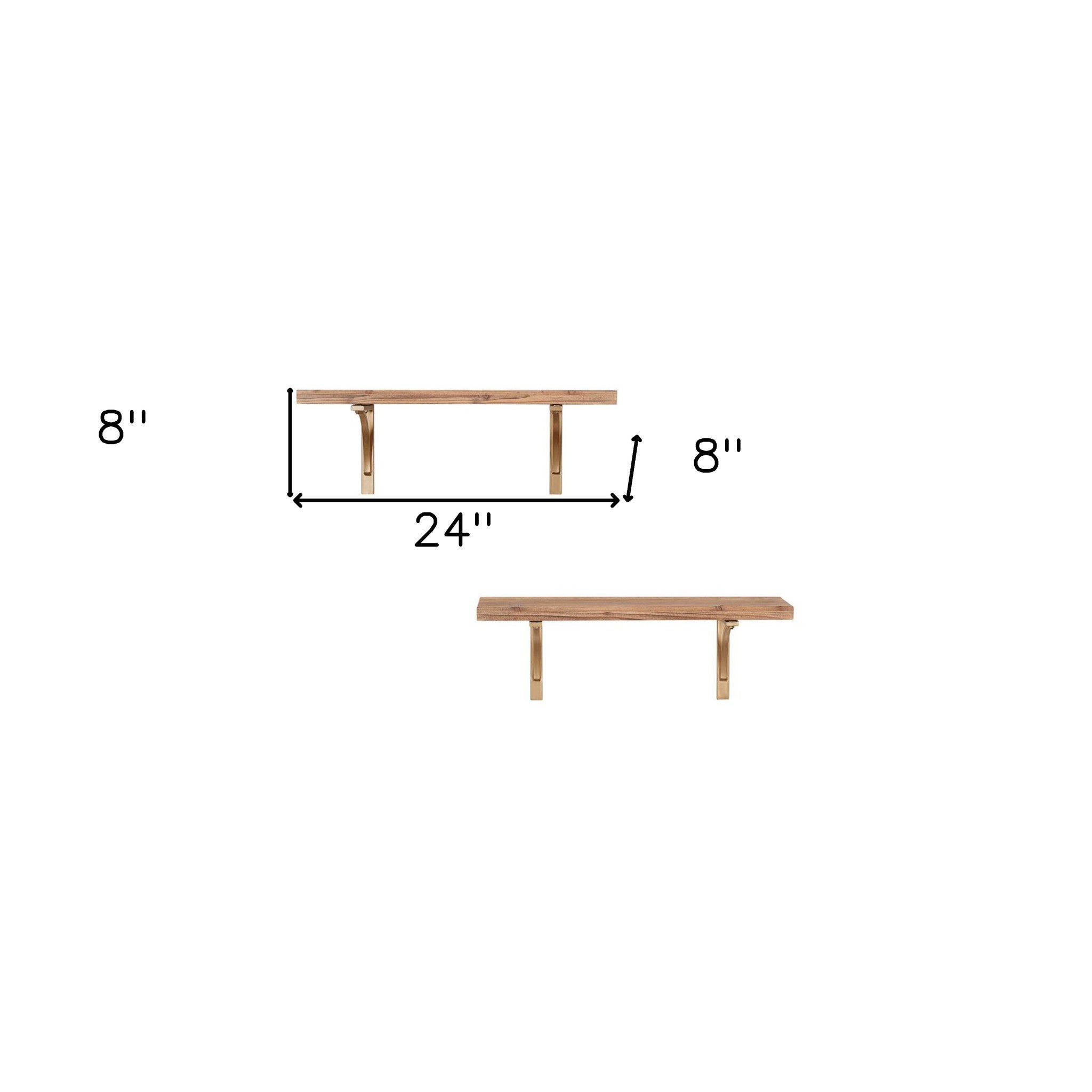 24" Two Shelves Solid Wood Wall Mounted Shelving Unit