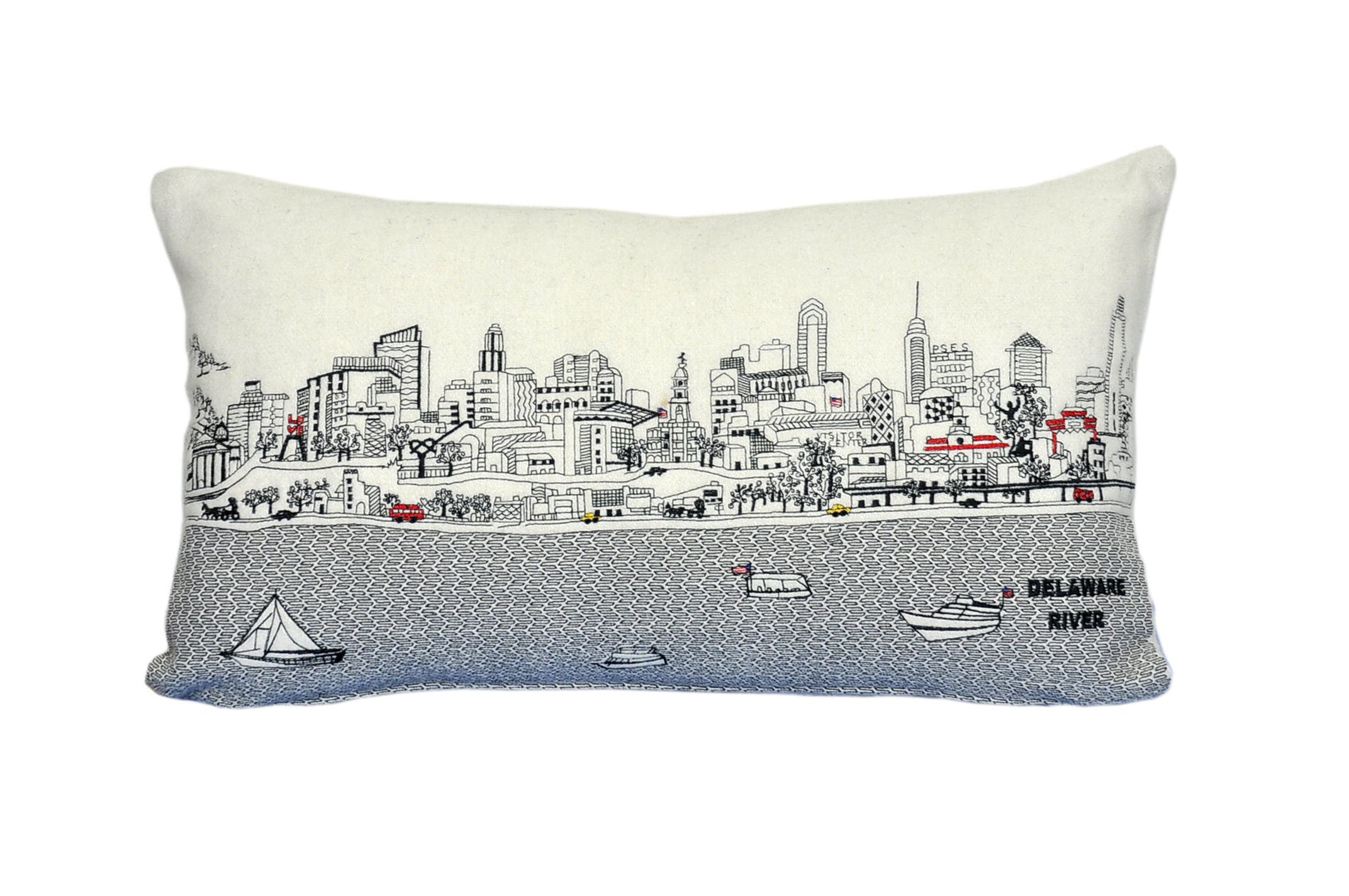 Showcase this famous city, with our Cream Color Philadelphia Daylight Skyline Prince Size Lumbar Decorative Pillow. The...
