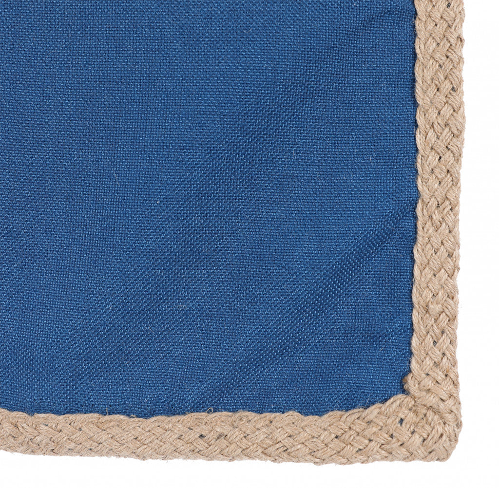 24" X 24" Blue and Brown Polyester Zippered Pillow with Jute Trim