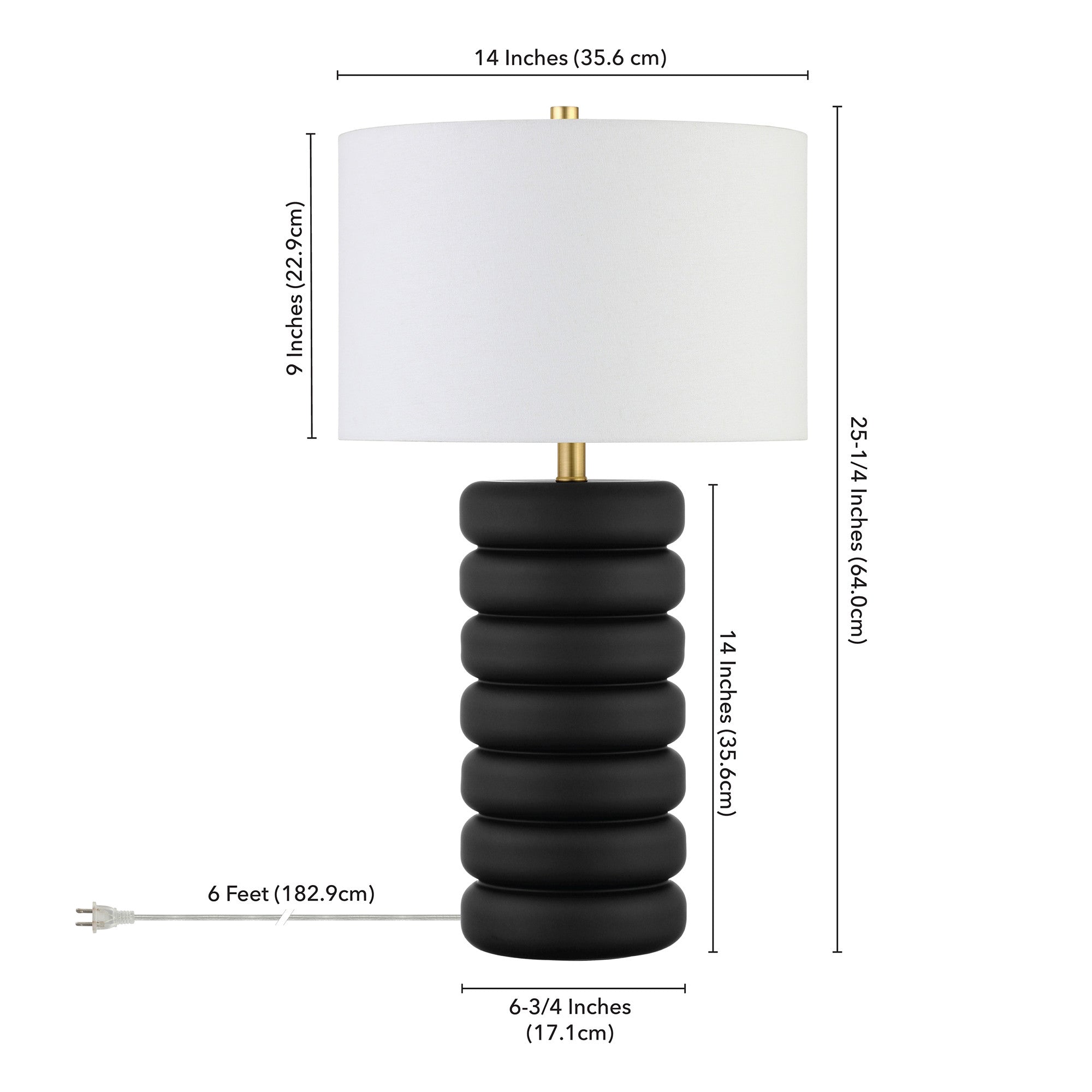 25" Black Ceramic Table Lamp With White Drum Shade