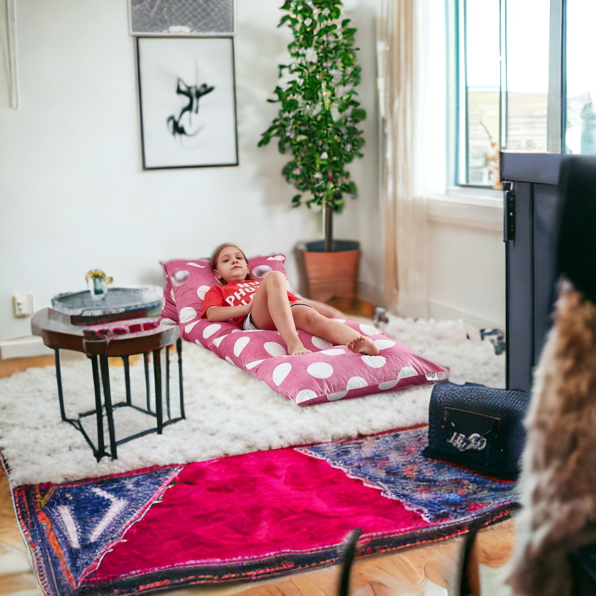Practicality and fashion mix together with this handy 26-inch pink and white microfiber polka dots pouf cover....