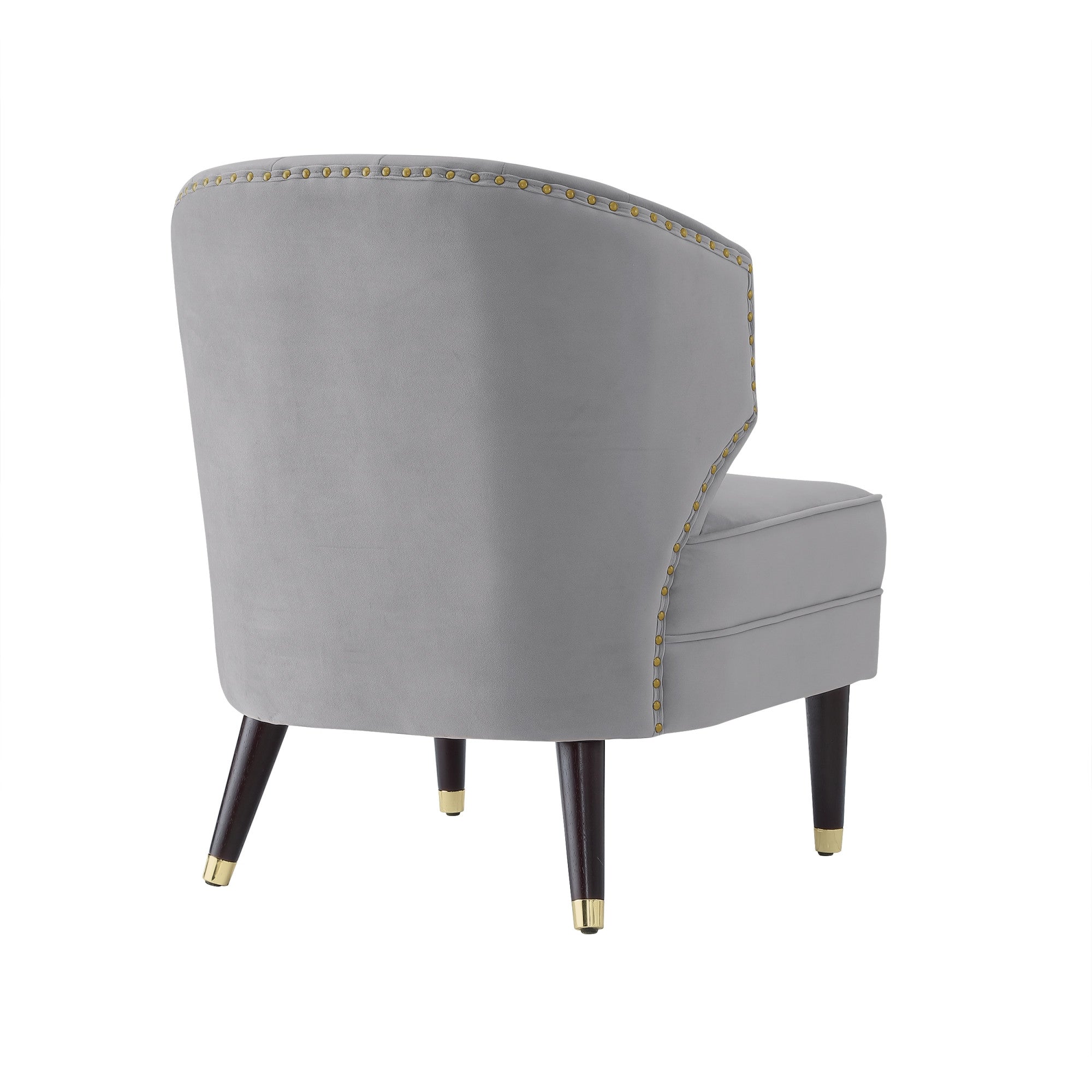 27" Gray And Gold Velvet Tufted Wingback Chair