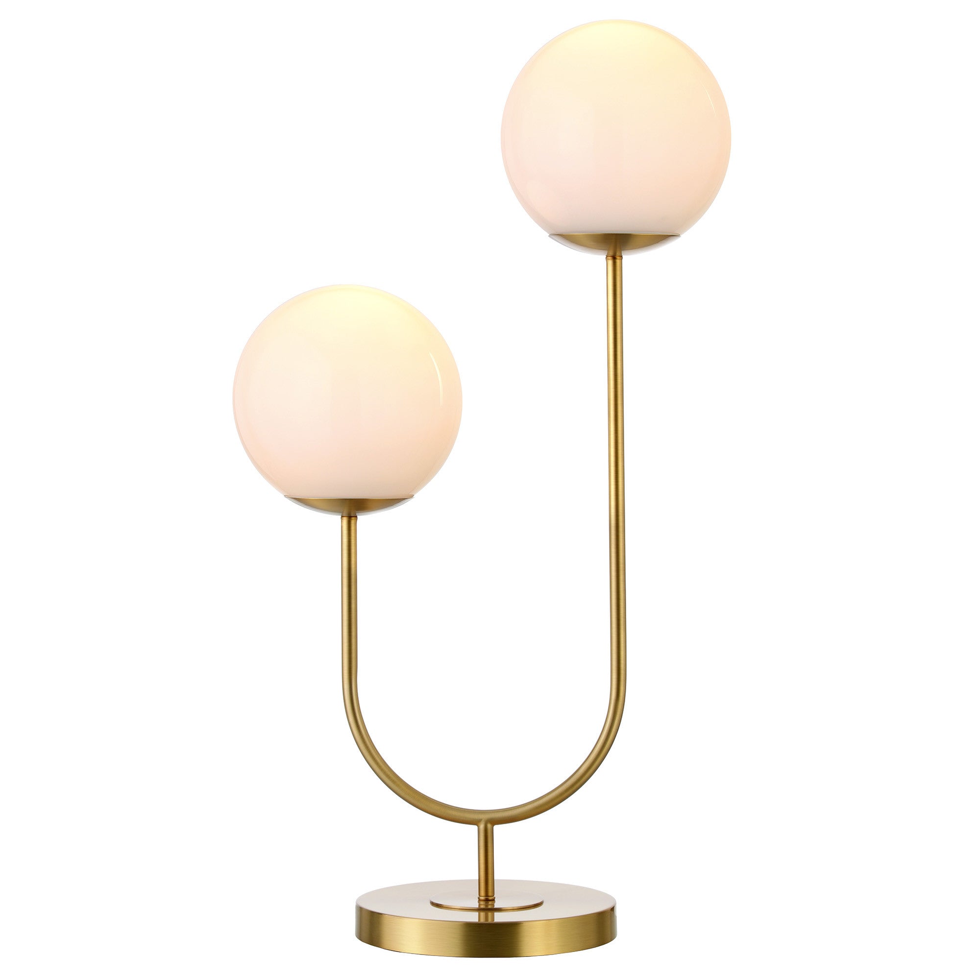 28" Gold Metal Two Light Novelty Globe Table Lamp With White Globe Shade