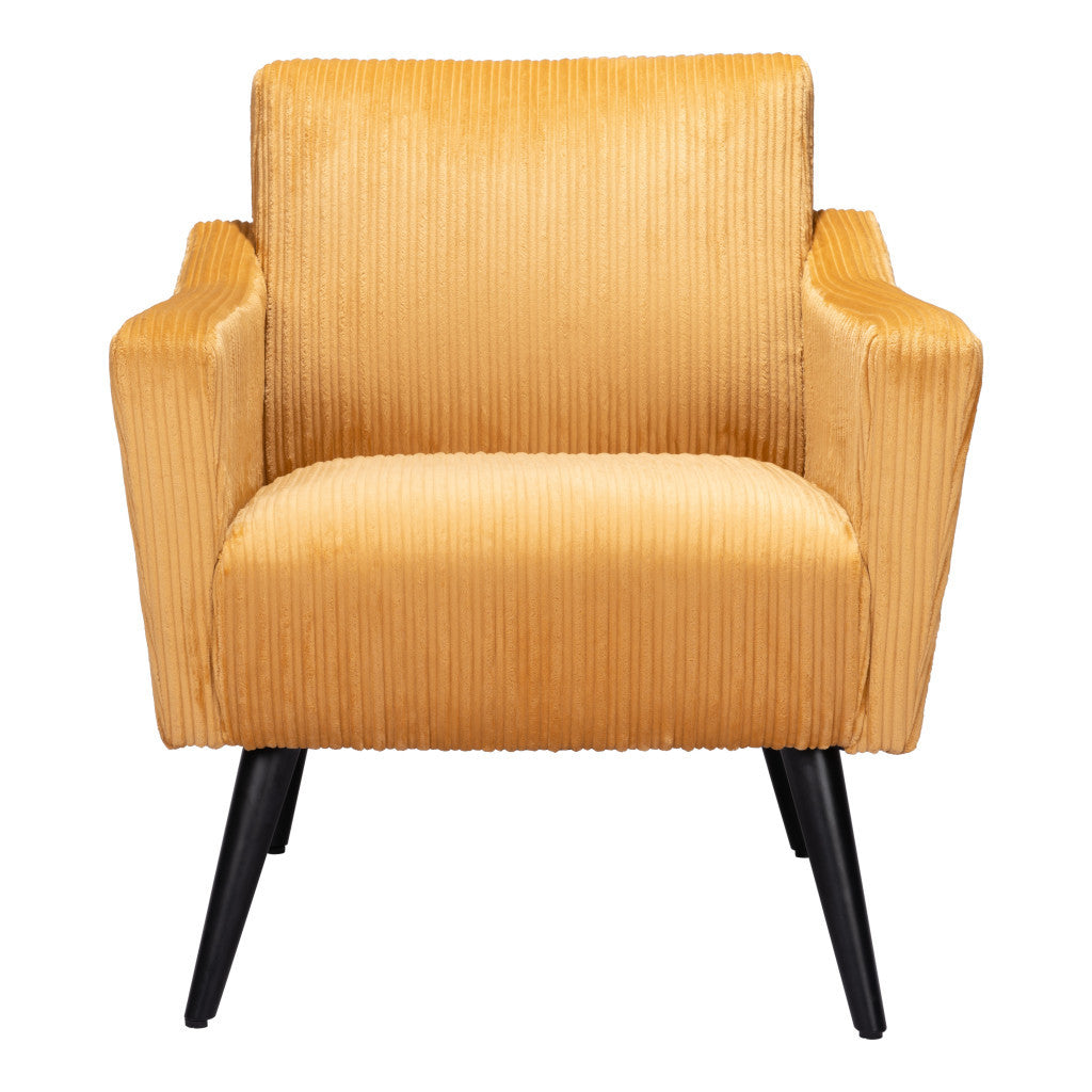29" Yellow And Black Corduroy Tufted Arm Chair