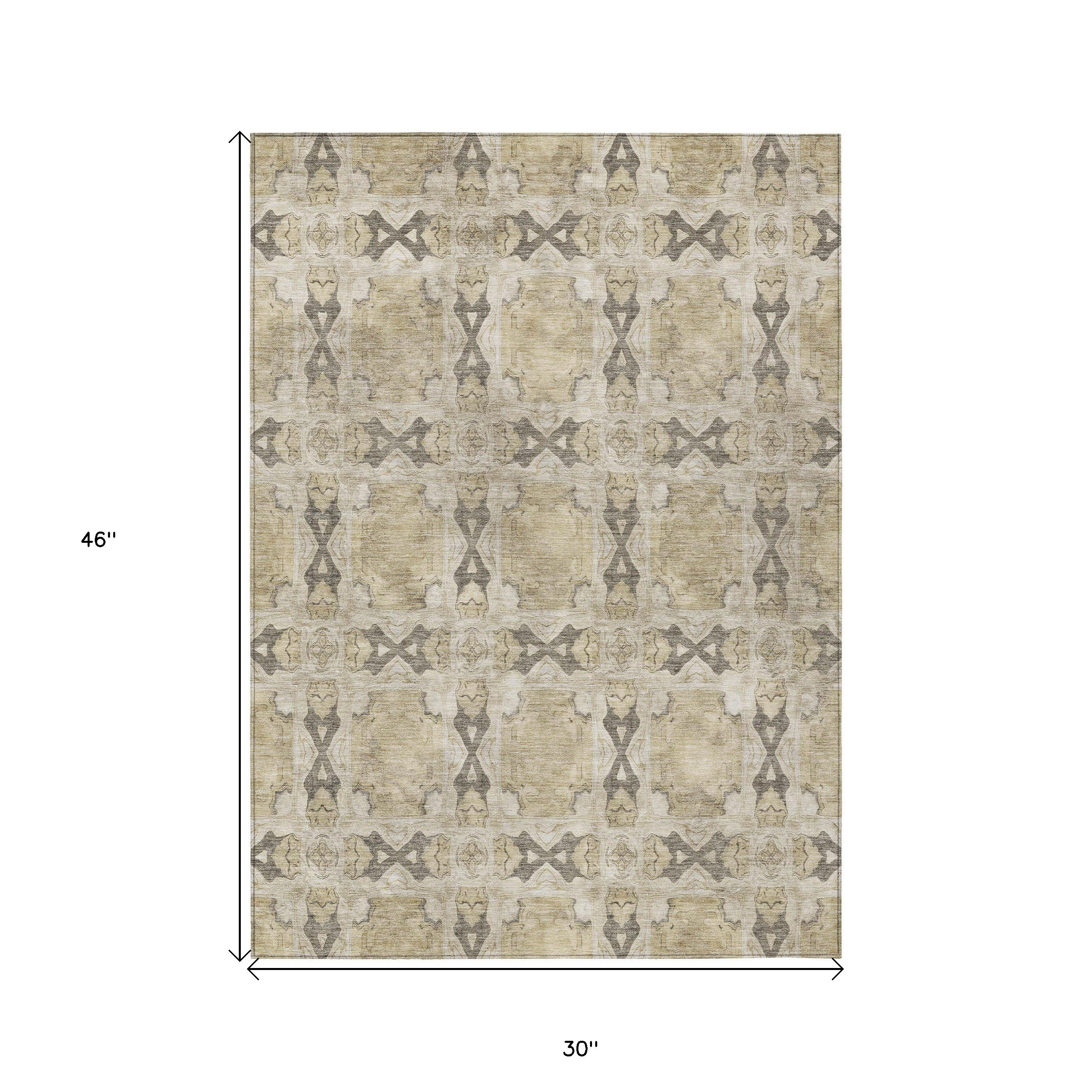 3' X 4' Beige and Gray Floral Medallion Washable Non Skid Indoor Outdoor Area Rug