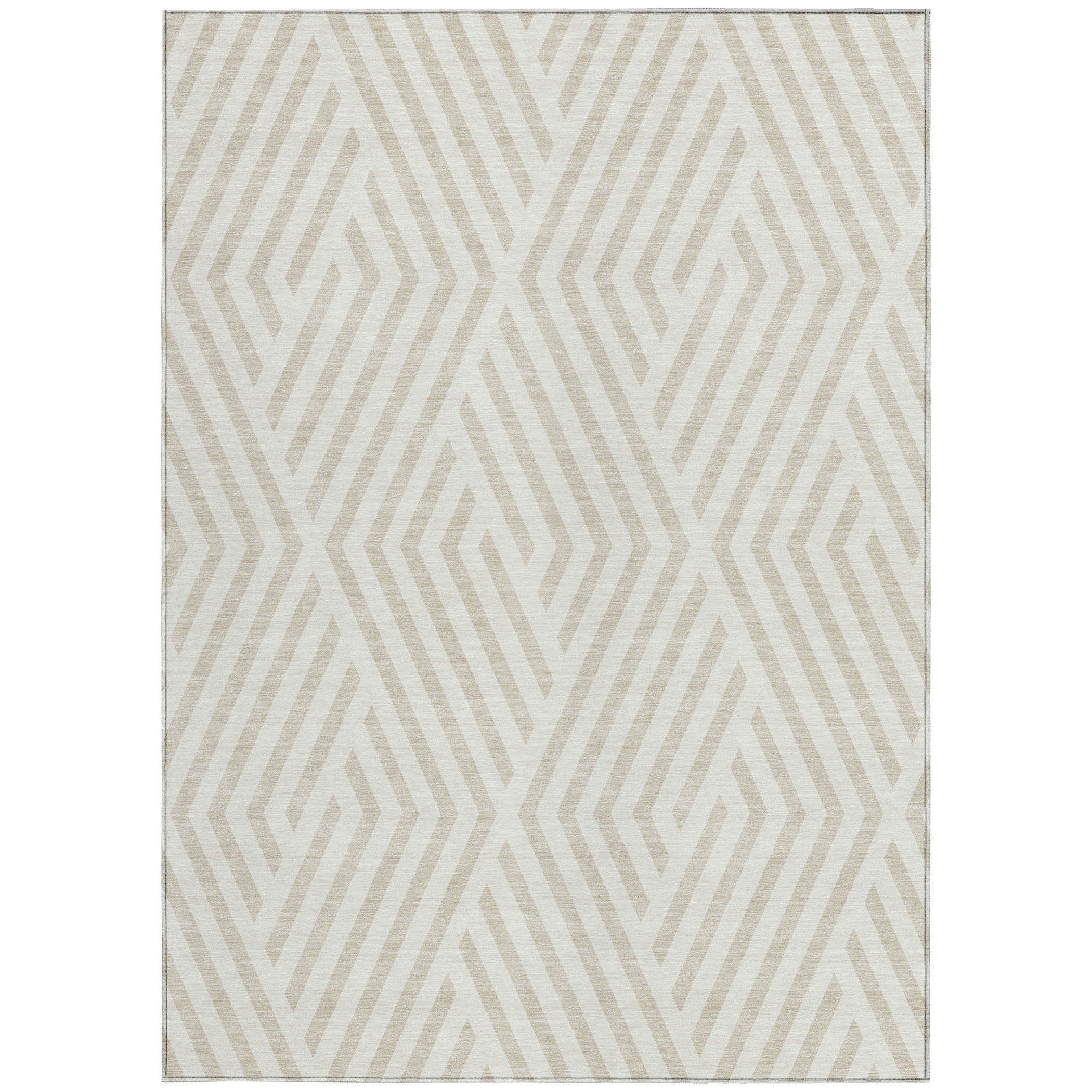 3' X 4' Beige and Ivory Geometric Washable Non Skid Indoor Outdoor Area Rug