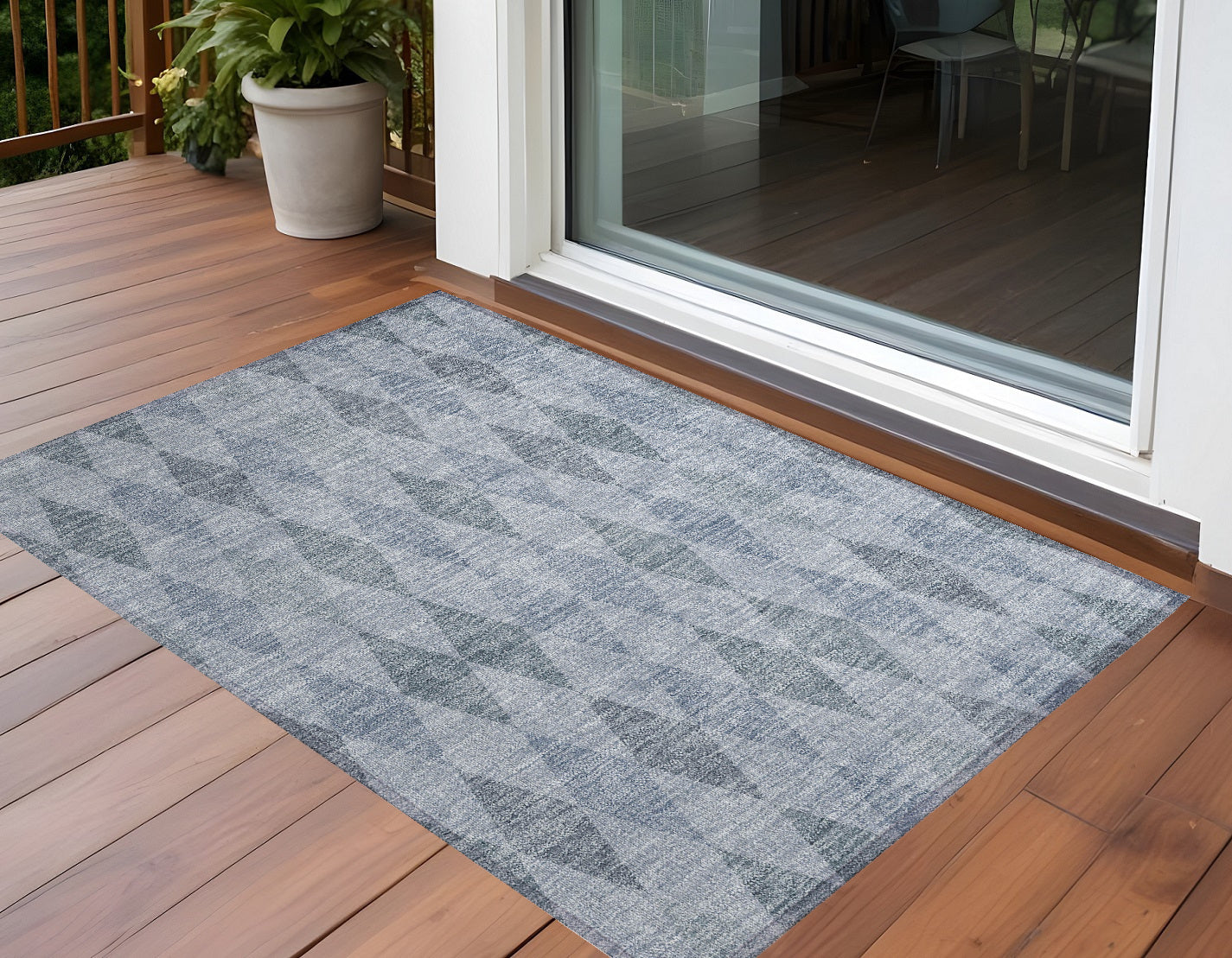 3' X 4' Denim Blue Geometric Washable Non Skid Indoor Outdoor Area Rug