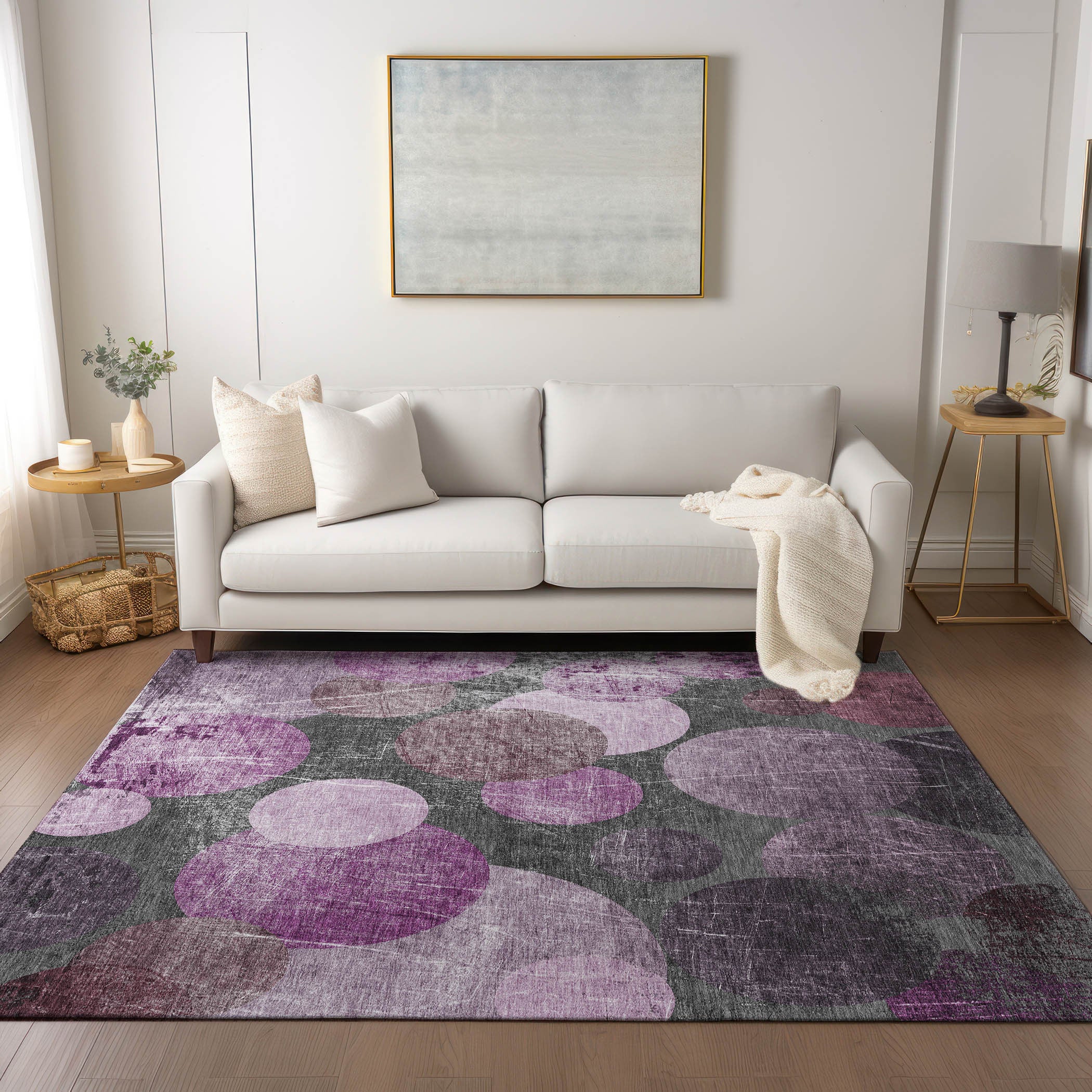 Add some artistry to your room with this 3-foot x 4-foot gray and purple abstract washable stain...