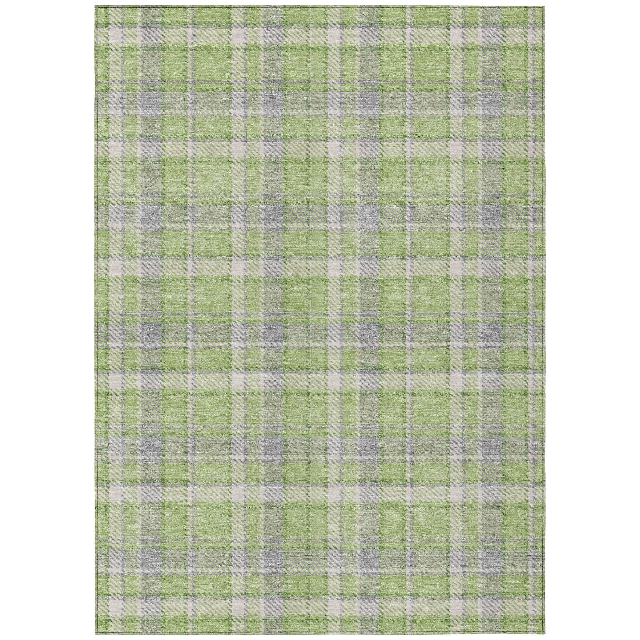 Add some artistry to your room with this 3-foot x 4-foot green and gray plaid washable stain...