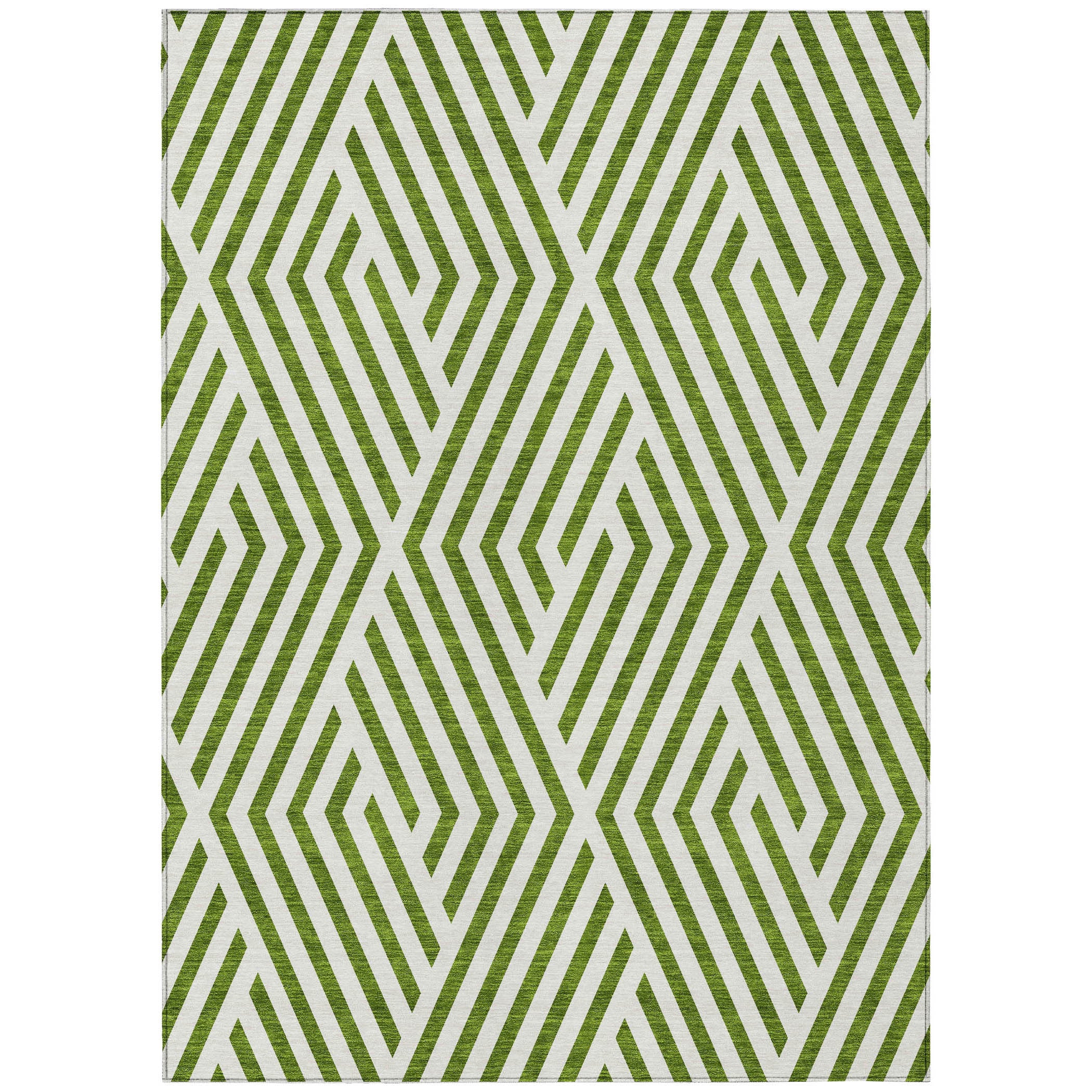 3' X 4' Lime Green and White Geometric Washable Non Skid Indoor Outdoor Area Rug