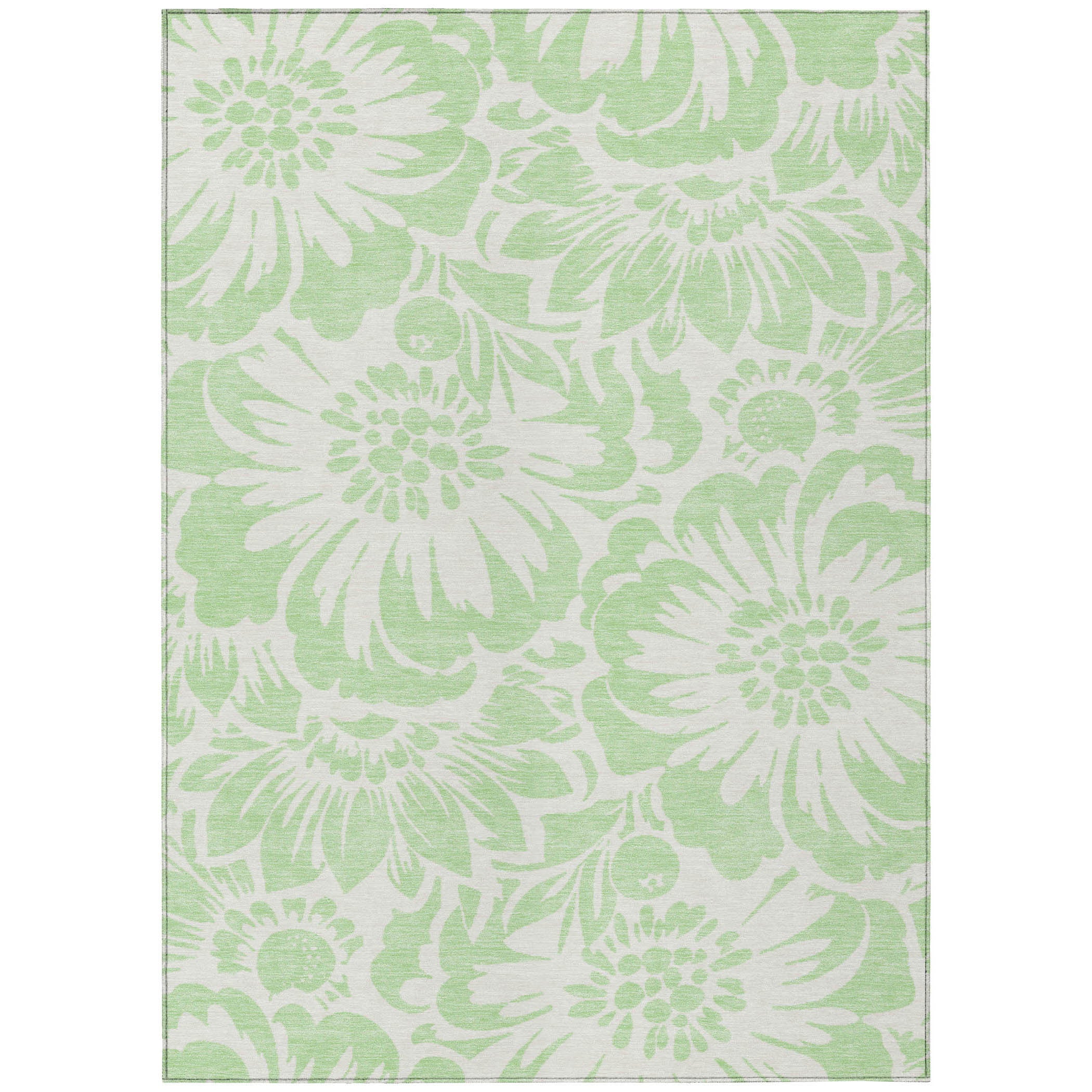 This 3-foot x 4-foot mint green and ivory floral washable stain resistant non skid indoor outdoor area...