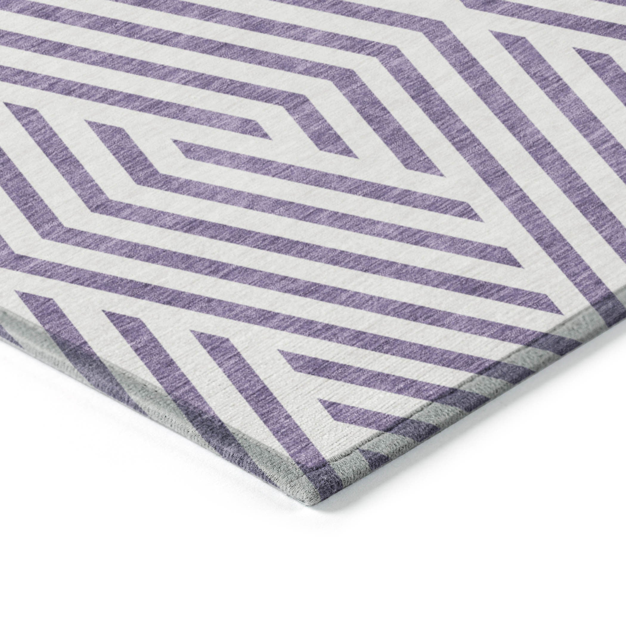 3' X 4' Purple and White Geometric Washable Non Skid Indoor Outdoor Area Rug