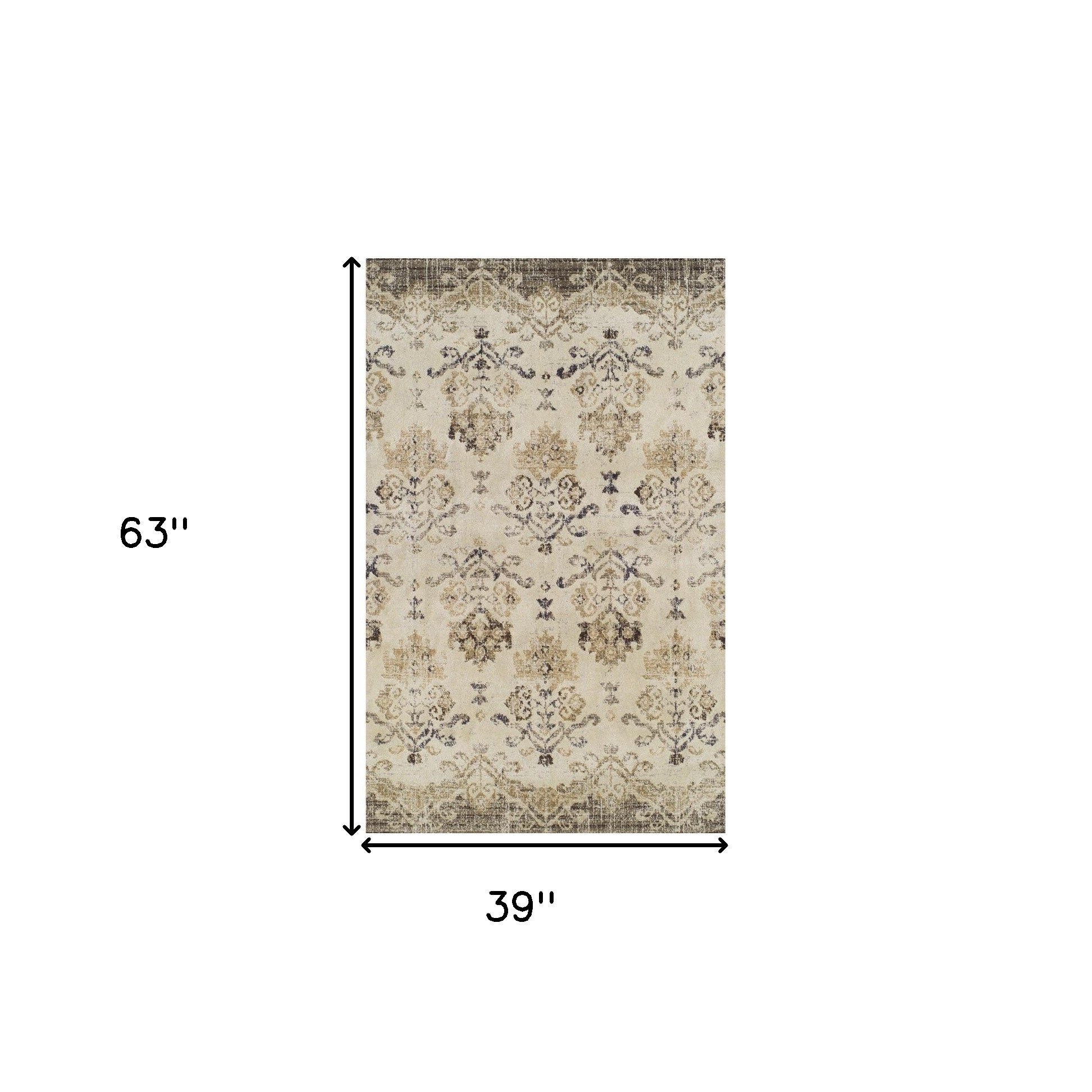 3' X 5' Beige and Brown Oriental Area Rug