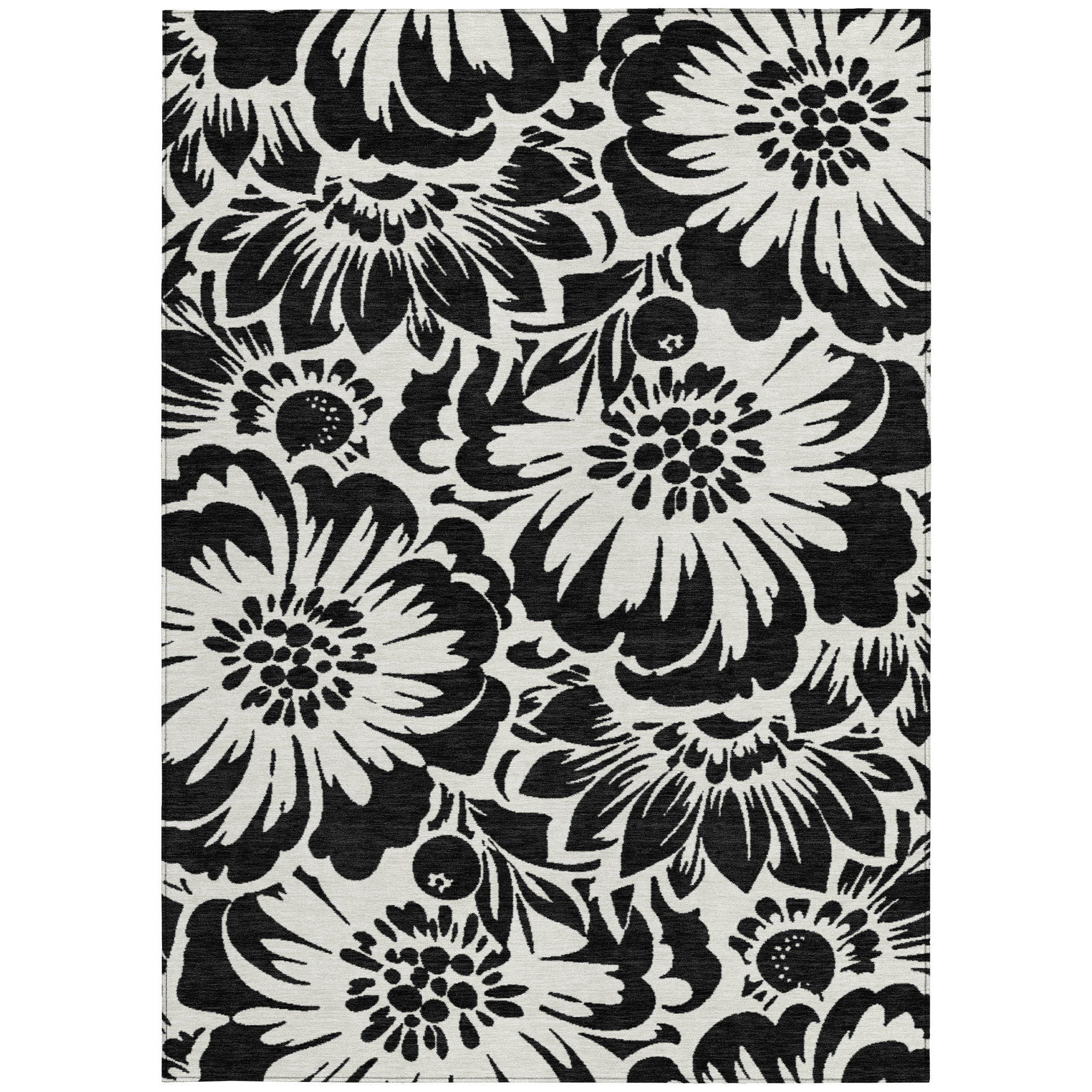 This 3-foot x 5-foot black and ivory floral washable stain resistant non skid indoor outdoor area rug,...