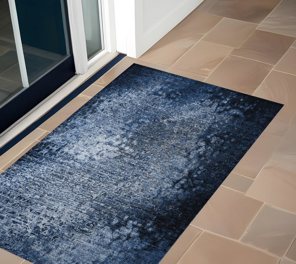 3' X 5' Blue Washable Non Skid Indoor Outdoor Area Rug